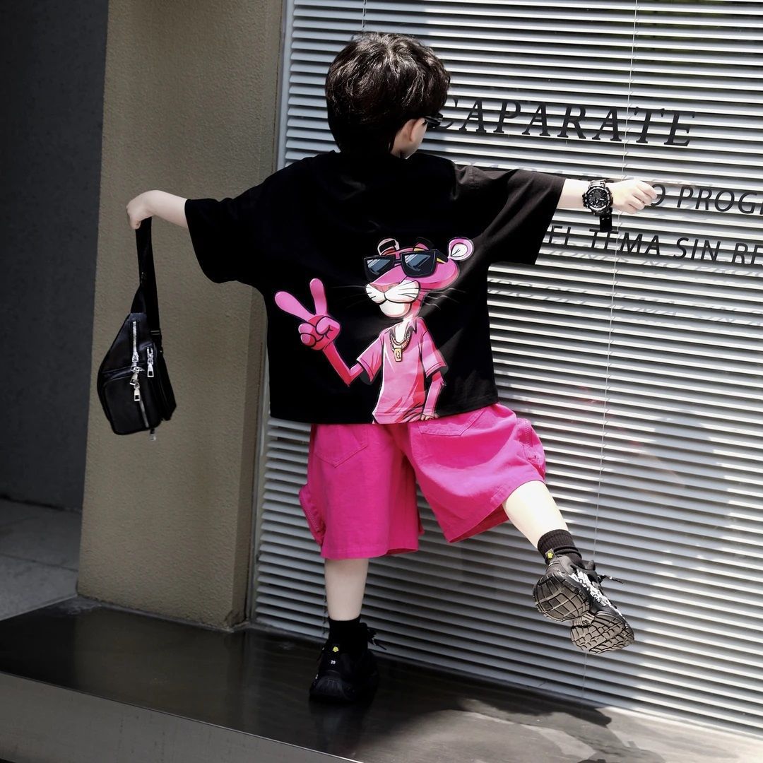 소년 여름 정장 아동복 새로운 아동 여름 옷 한국 스타일 잘 생긴 어린 소년 의류 여름 반팔 티셔츠 작업복스토어 가기