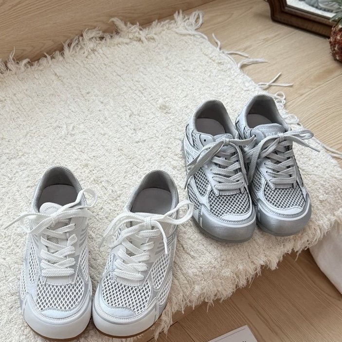 여성을 위한 실버 두꺼운 밑창 높이 증가 아빠 신발 트렌디한 다용도 2025 여름 새로운 통기성 캐주얼 운동화스토어 가기