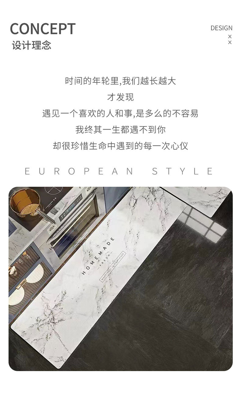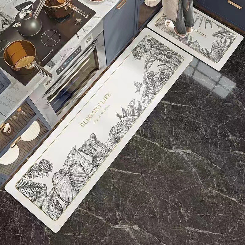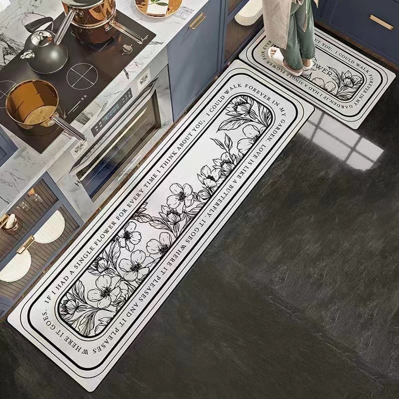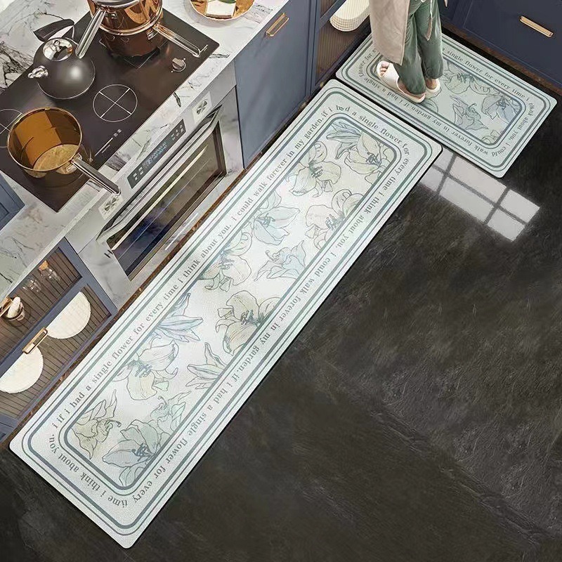 미국식 꽃무늬 주방 바닥매트, 속건성 흡수성 규조토 바닥매트 2종 세트, 미끄럼 방지 바닥매트, 긴 발매트스토어 가기