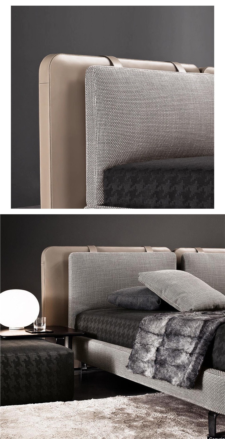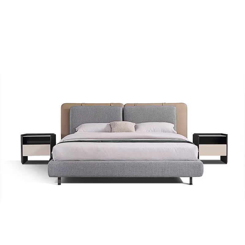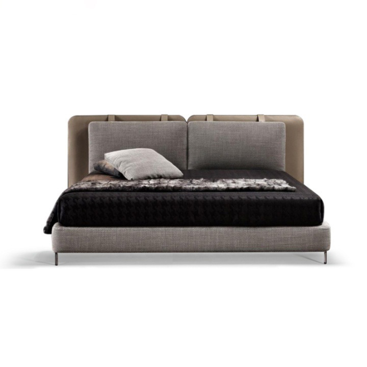 이탈리안 미니멀리스트 학교 가방 침대 더블 침대 면 및 린넨 패브릭 침대 안장 가죽 하이 엔드 마스터 침실 웨딩 침대 Tatlin 침대 없음