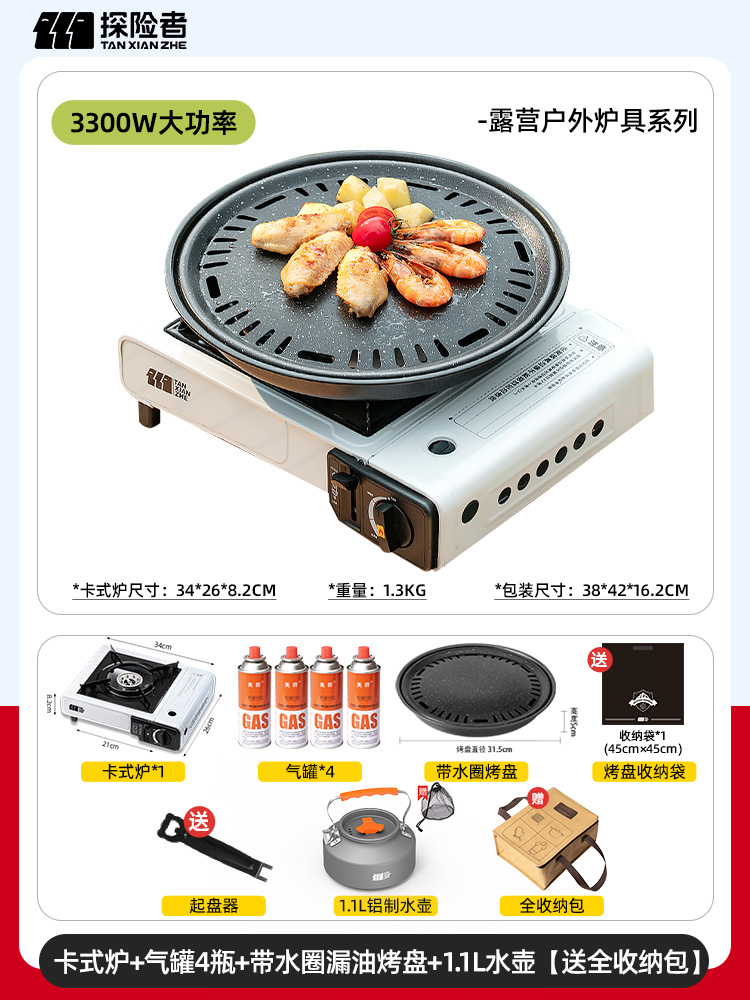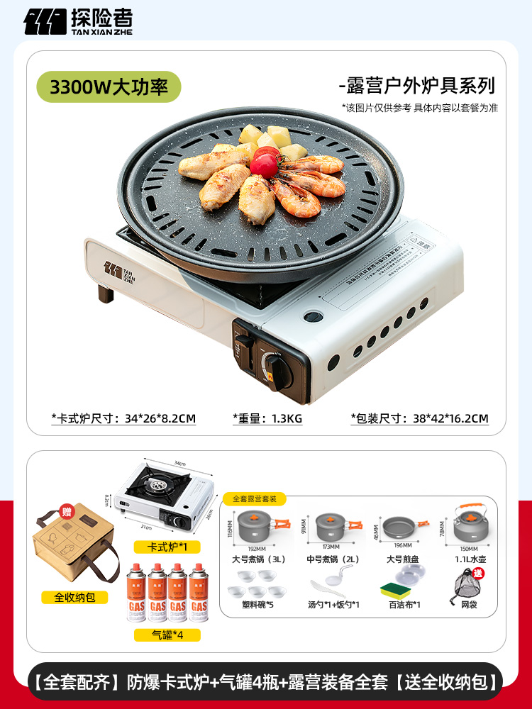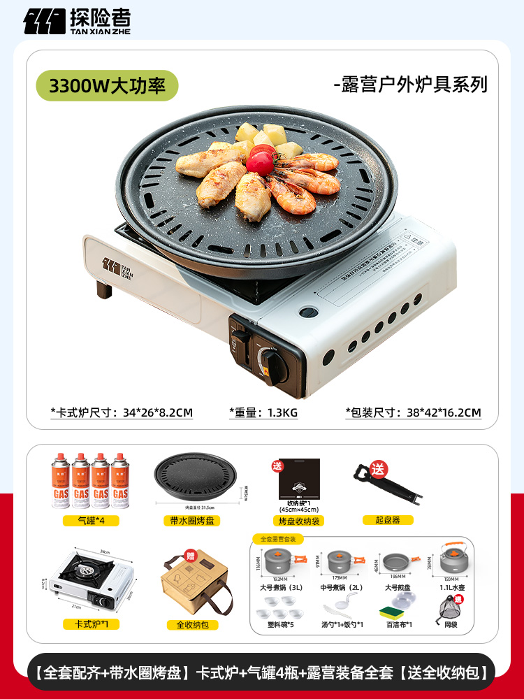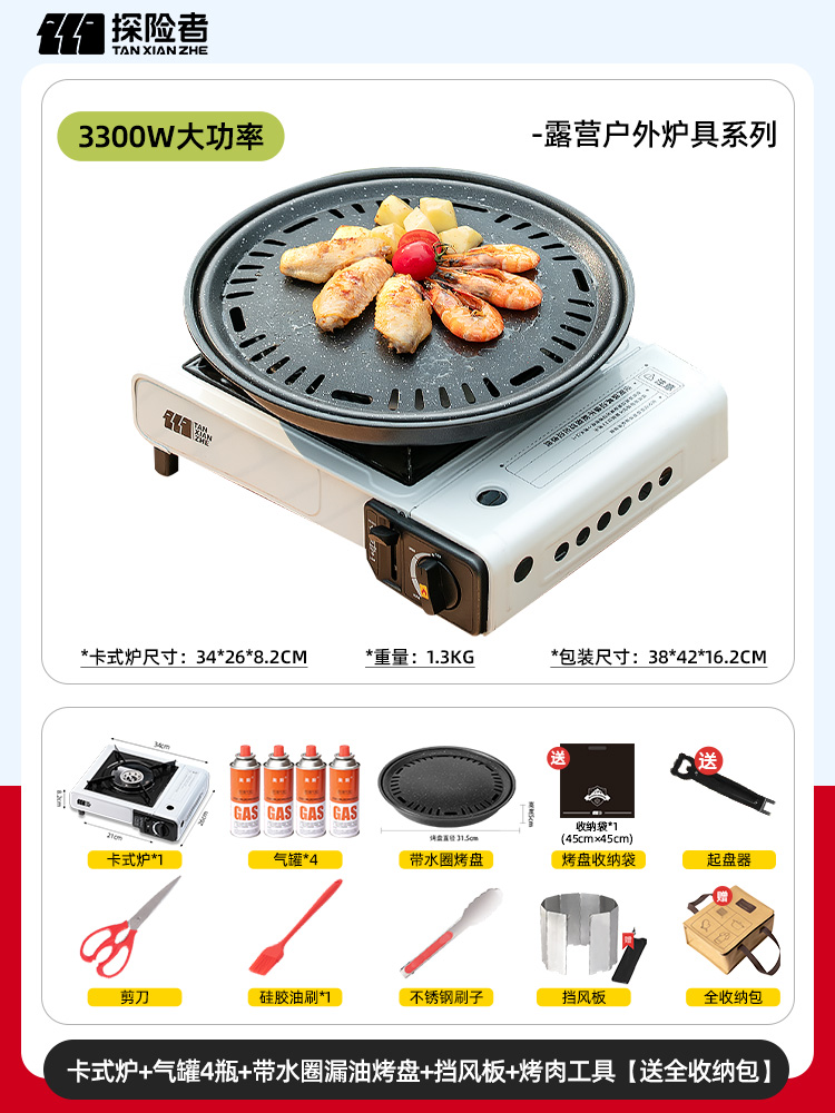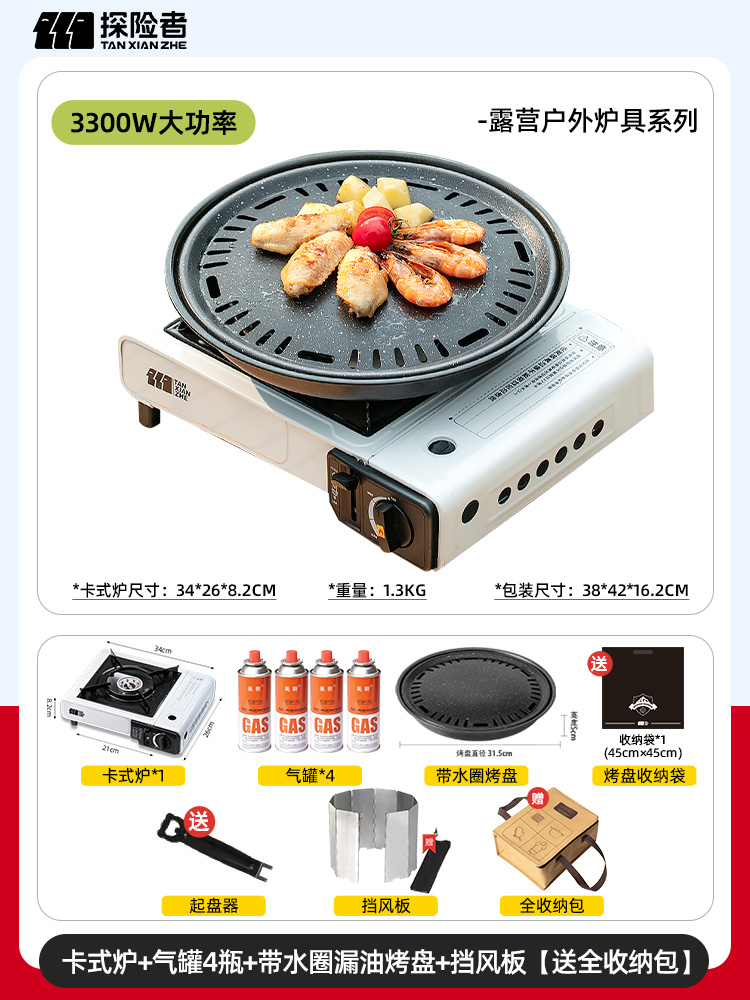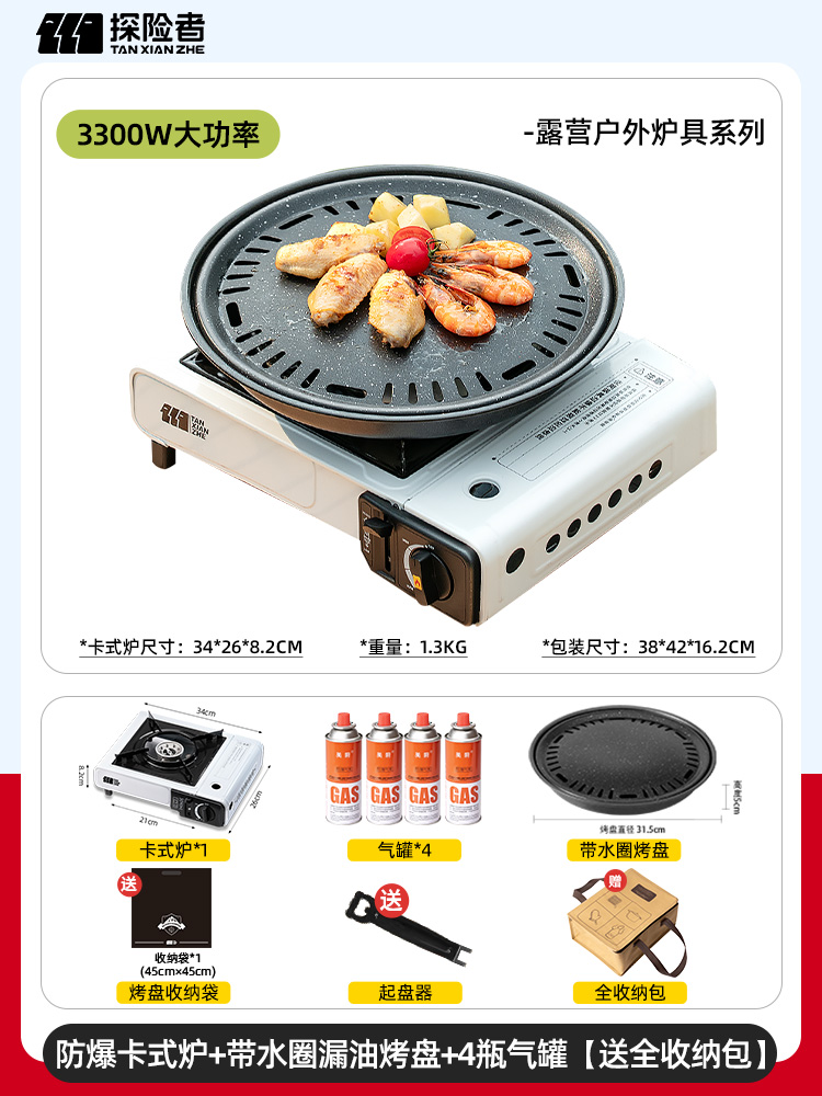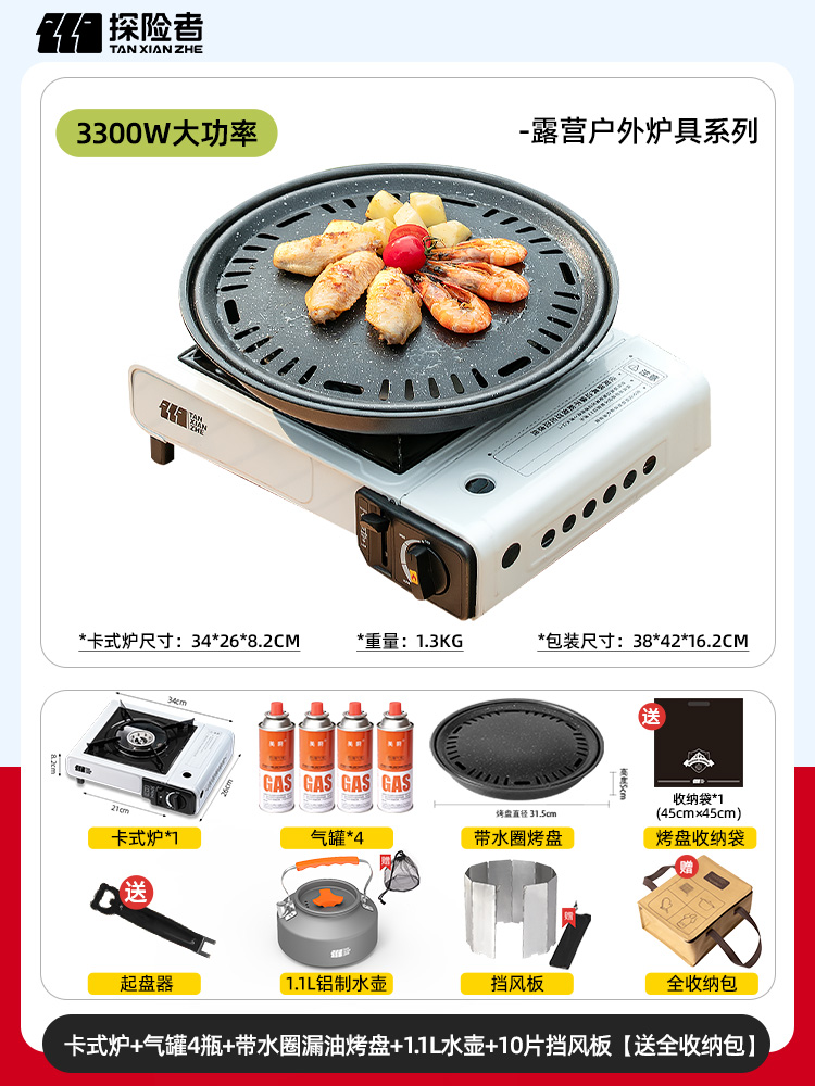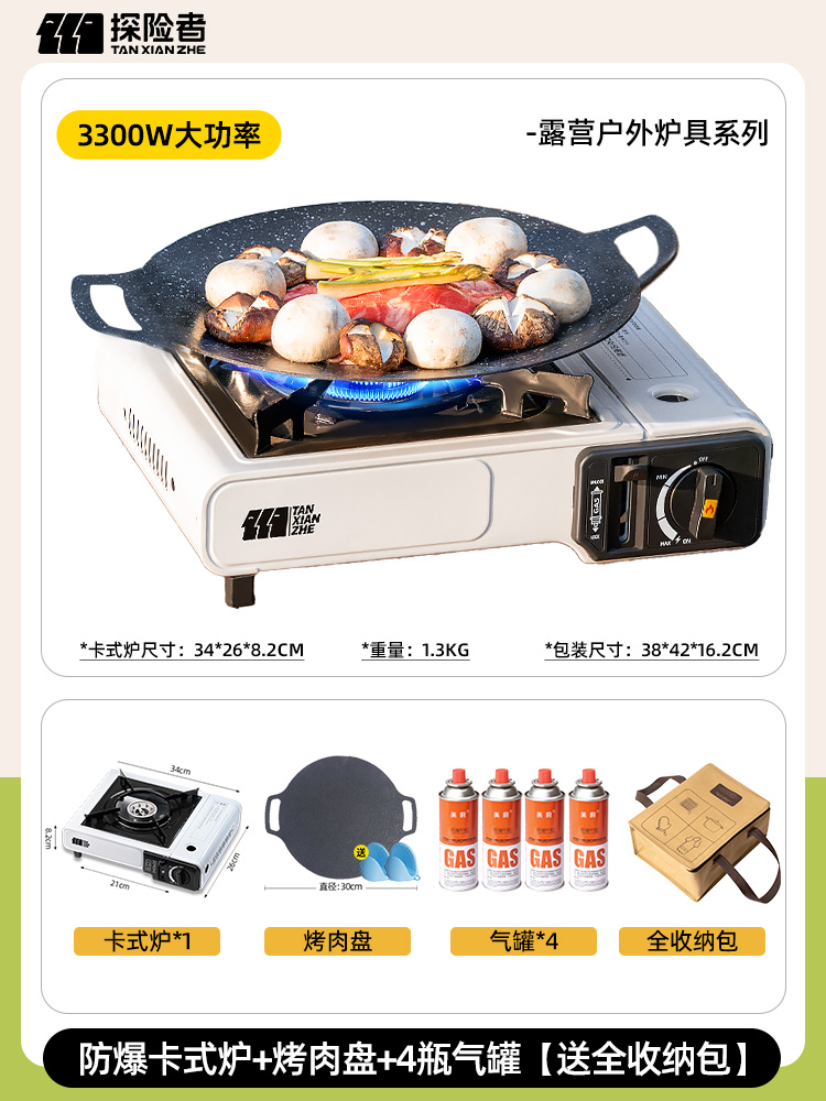 • 방폭 카세트 스토브 + 바베큐 플레이트 + 가스 탱크 4병 [무료 전체 보관 가방]