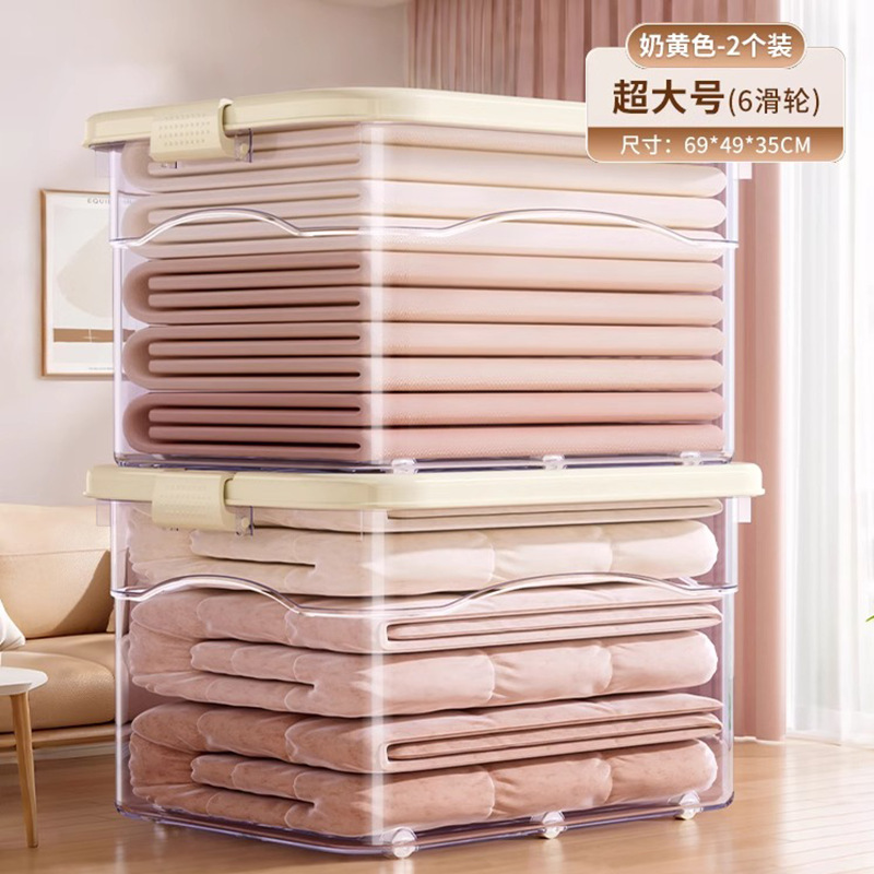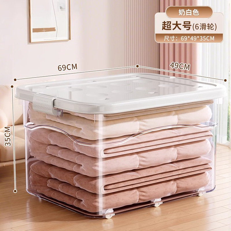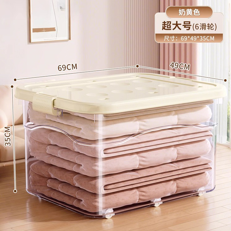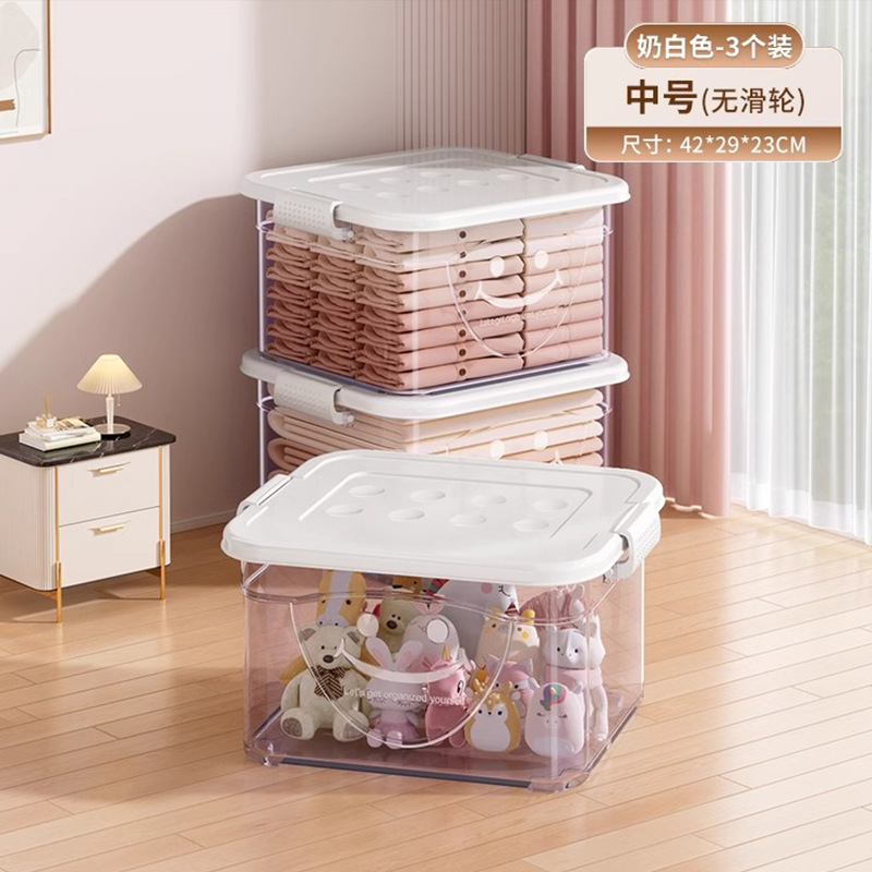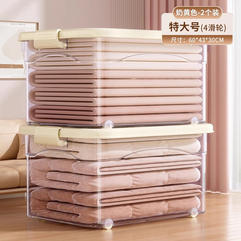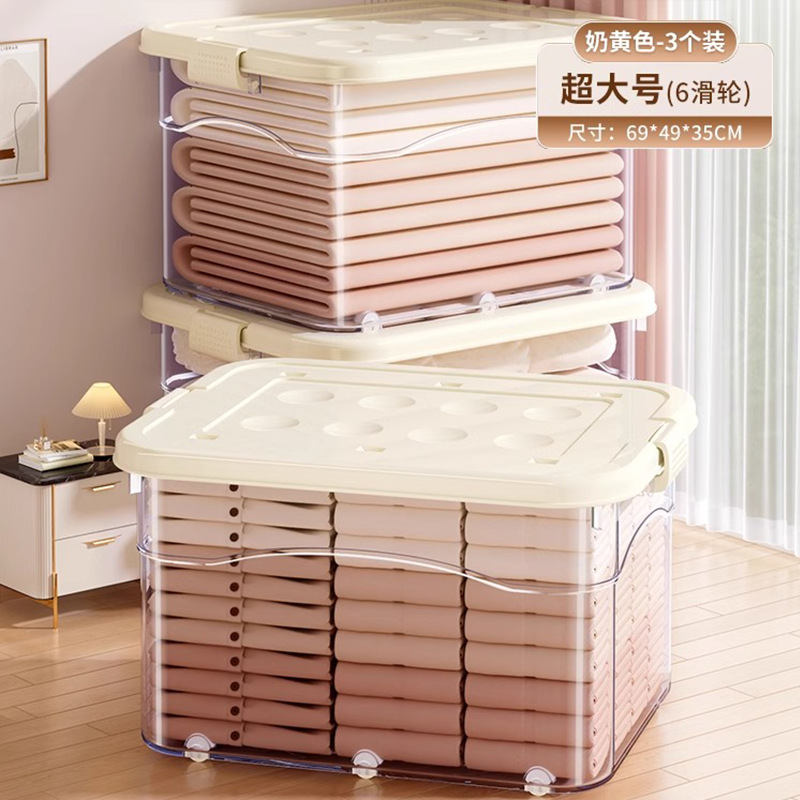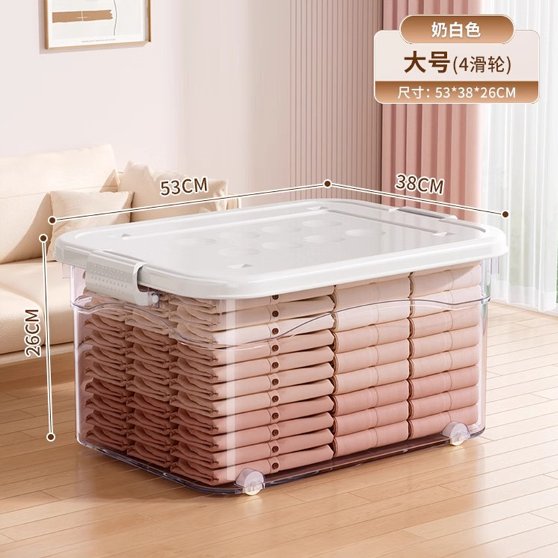 투명 플라스틱 상자 가정용 의류 이불 보관 상자 뚜껑이있는 어린이 장난감 도서 보관 상자 바퀴가있는 보관 상자