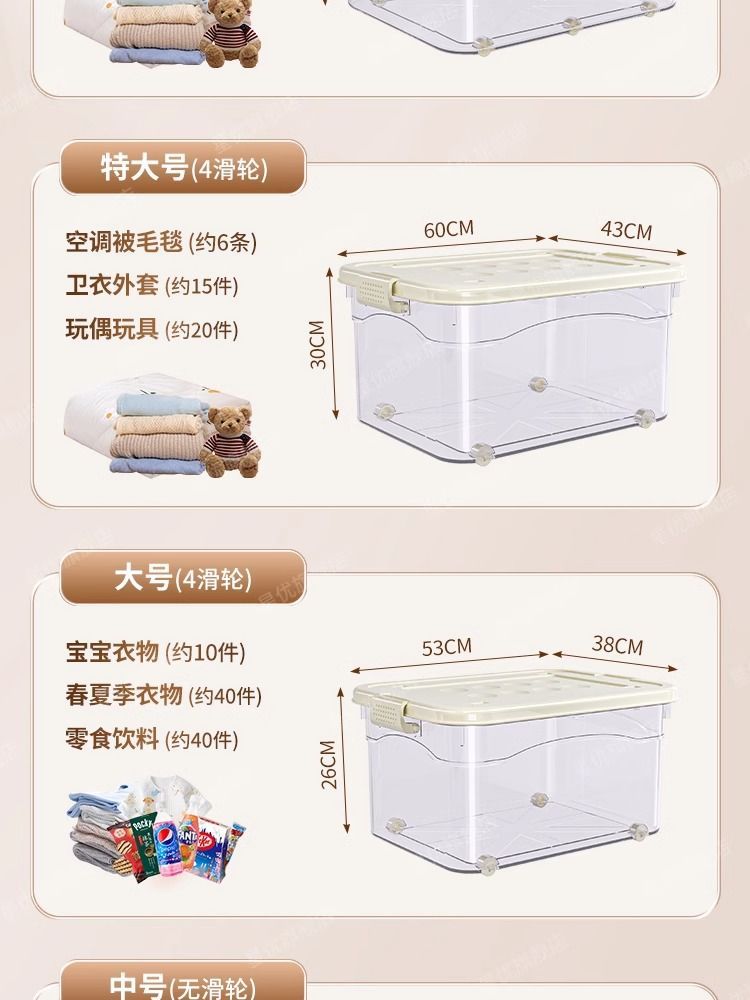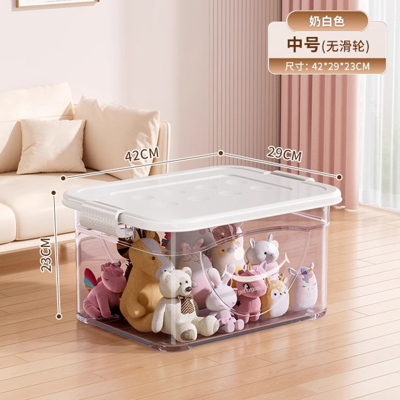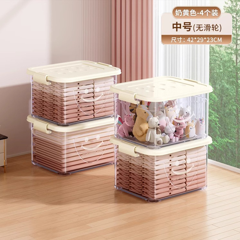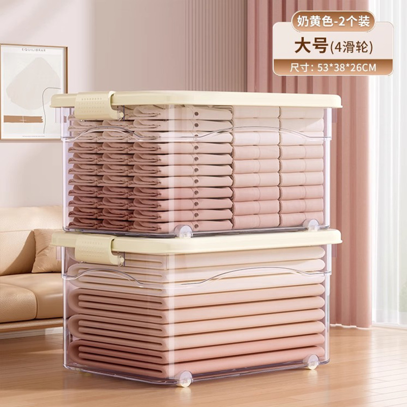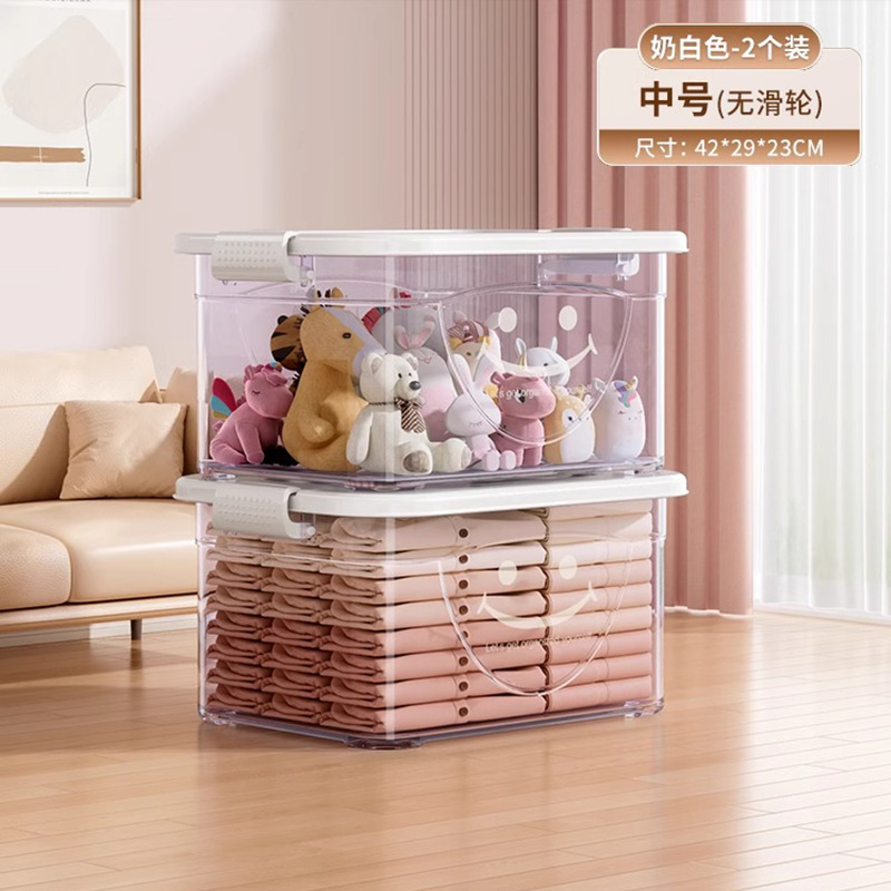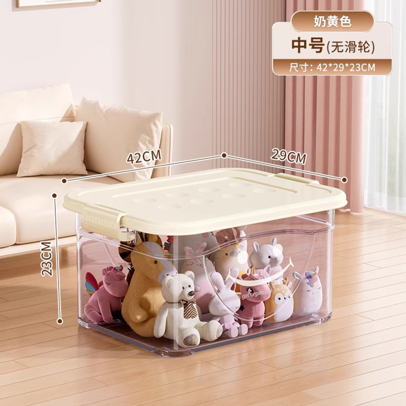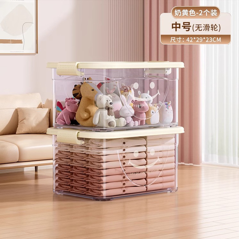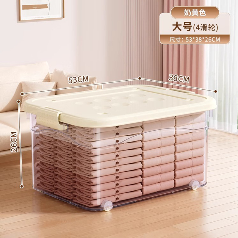 투명 플라스틱 상자 가정용 의류 이불 보관 상자 뚜껑이있는 어린이 장난감 도서 보관 상자 바퀴가있는 보관 상자