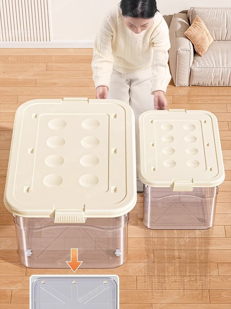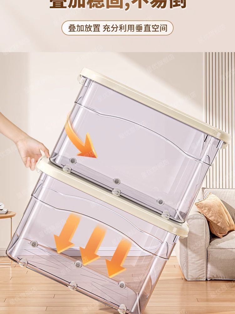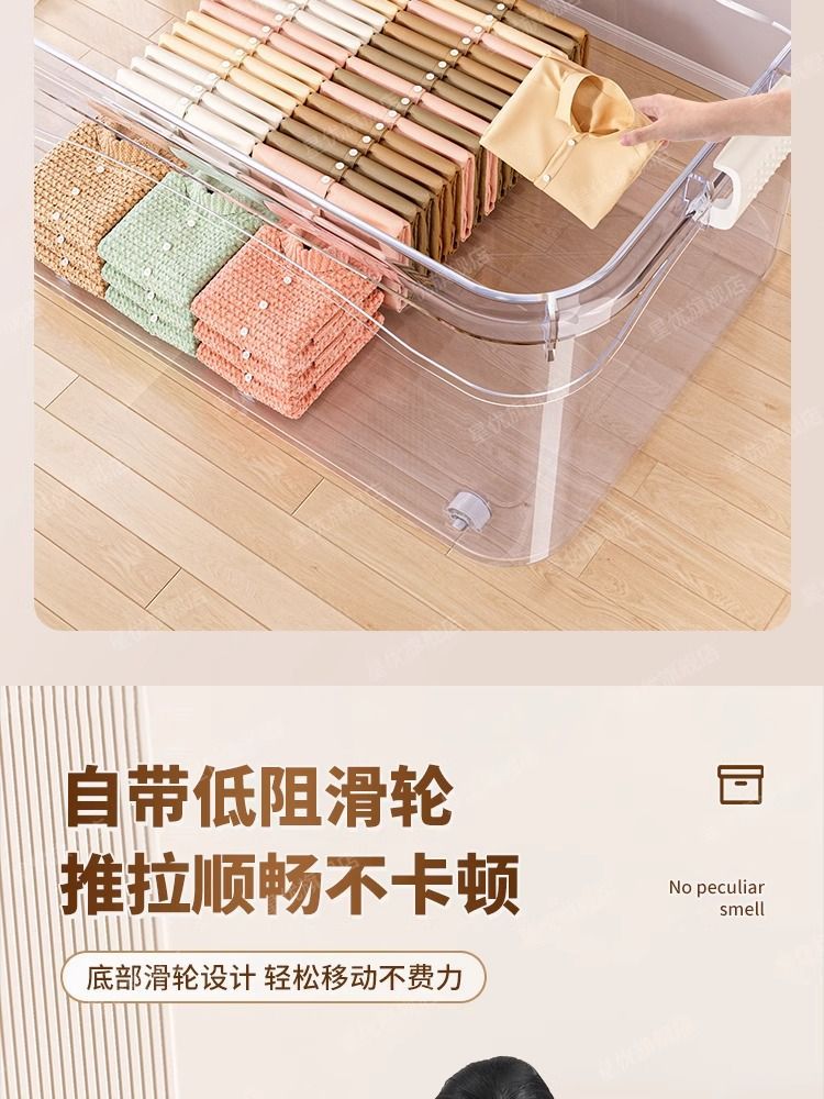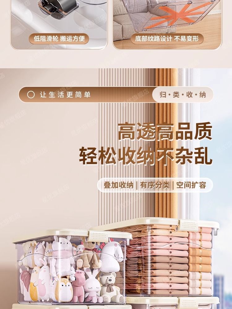 투명 플라스틱 상자 가정용 의류 이불 보관 상자 뚜껑이있는 어린이 장난감 도서 보관 상자 바퀴가있는 보관 상자스토어 가기