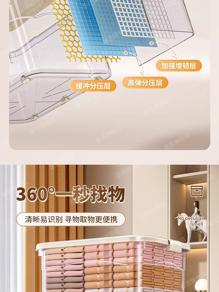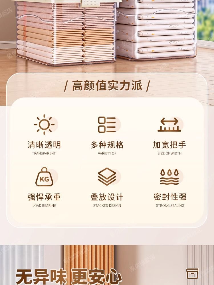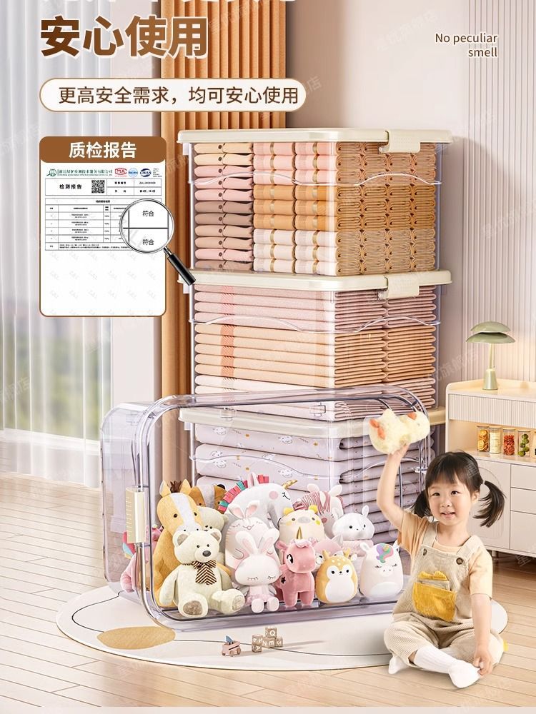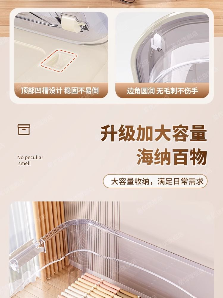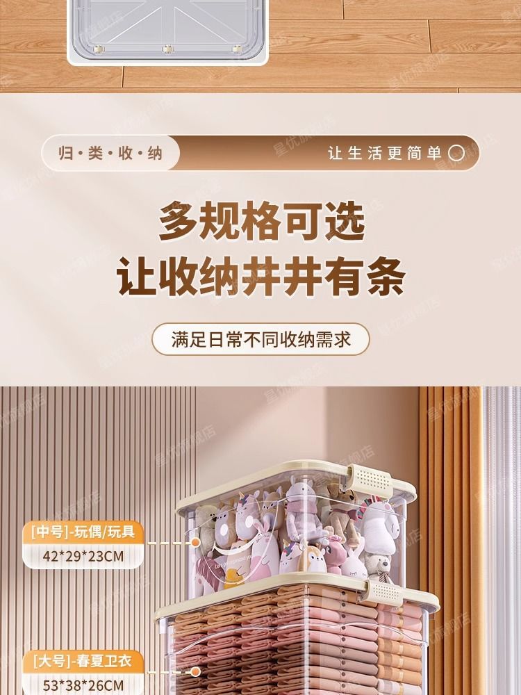 투명 플라스틱 상자 가정용 의류 이불 보관 상자 뚜껑이있는 어린이 장난감 도서 보관 상자 바퀴가있는 보관 상자스토어 가기