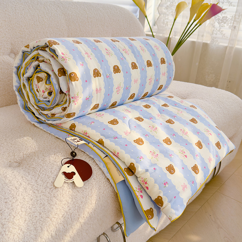 클래스 A 워시 코튼 콩 섬유 여름 이불 에어컨 이불 주름진 원사 인쇄 여름 시원한 이불 여름 얇은 이불 기계 세탁 가능