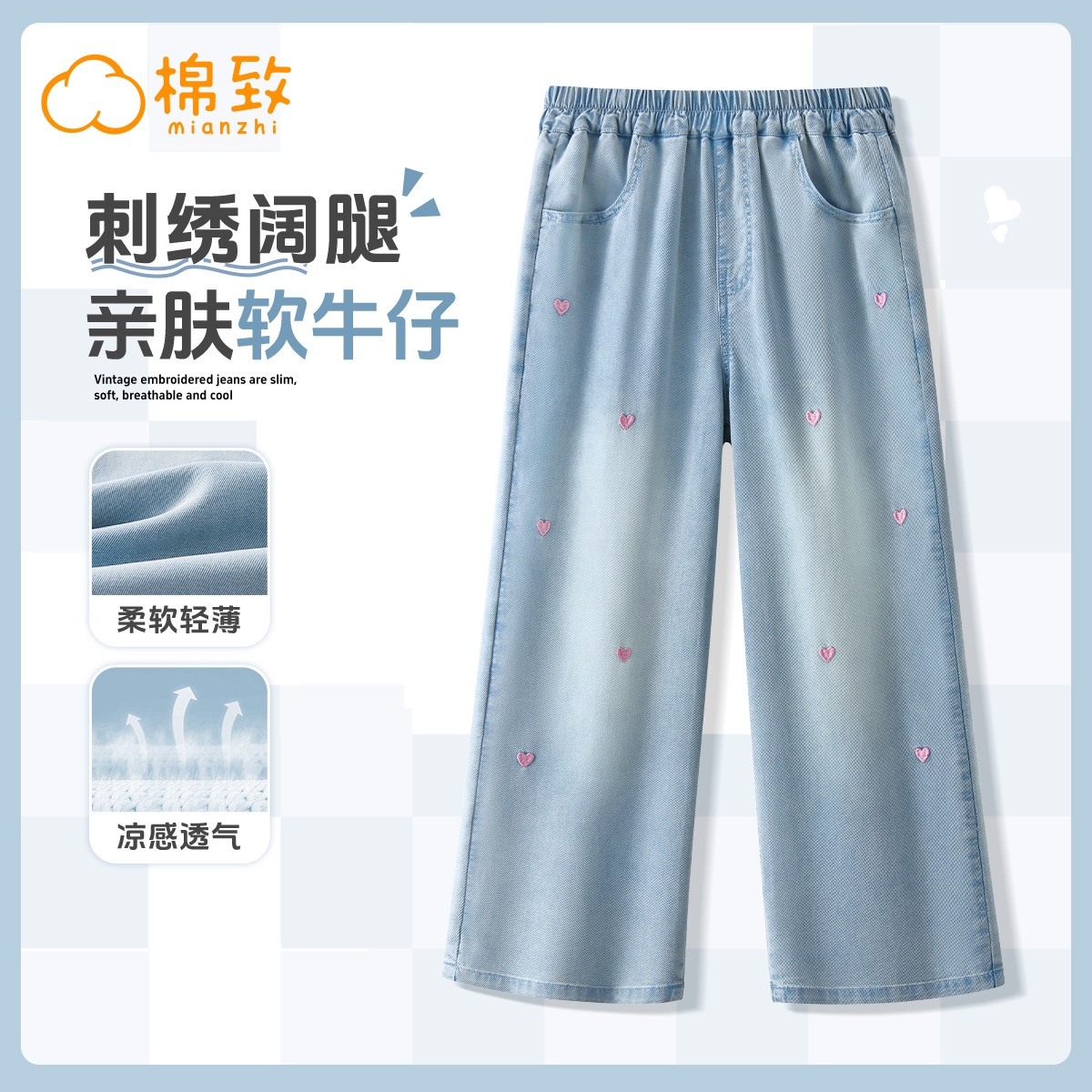 여자 텐셀 청바지 여름 2025 새로운 얇은 사랑 자수 여자 와이드 레그 바지 어린이 바지 도매스토어 가기