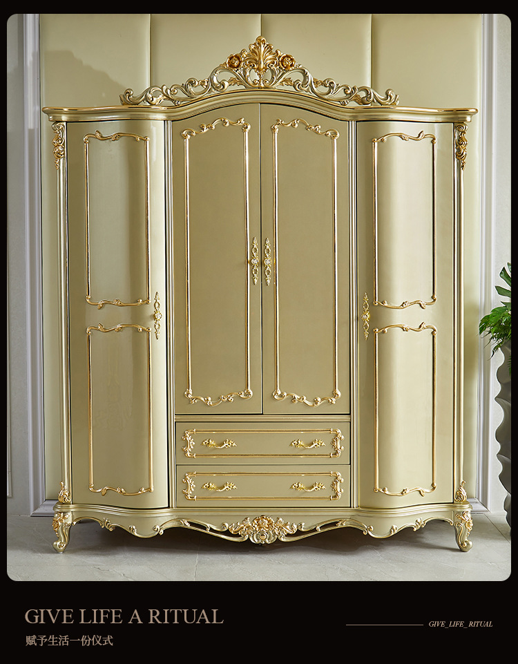 유럽식 옷장 빌라 프랑스 궁전 침실 단단한 나무 조각 수납 황금 옷장 4 도어 대형 옷장 럭셔리스토어 가기