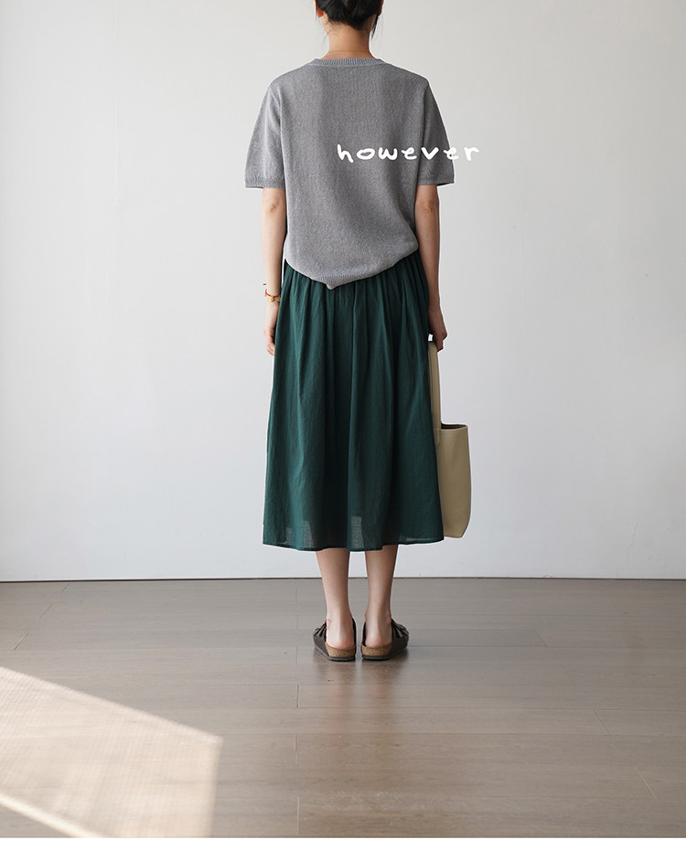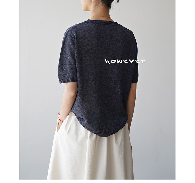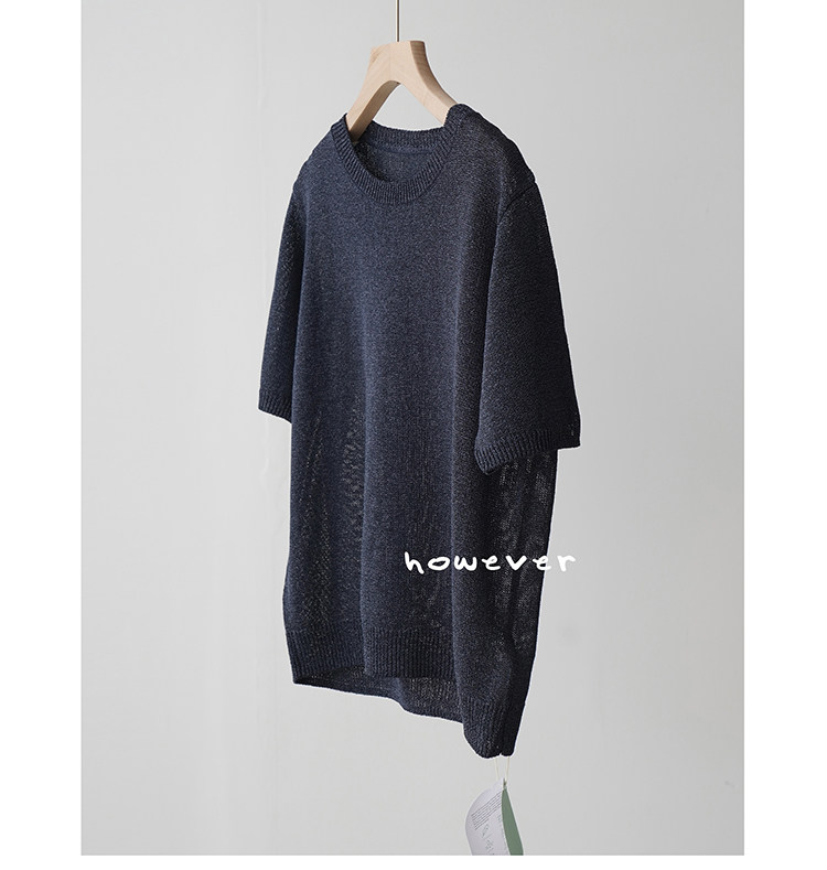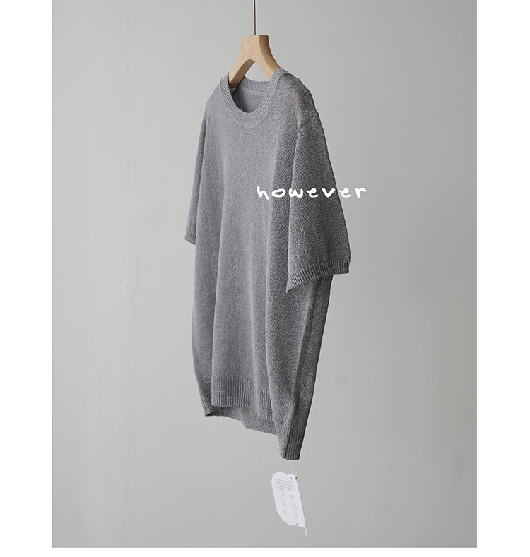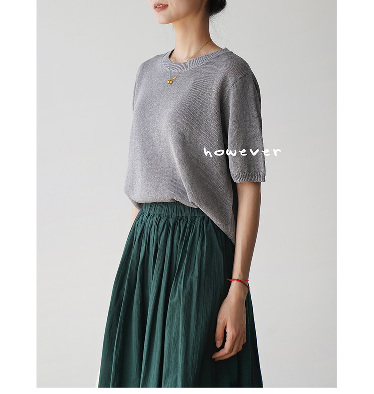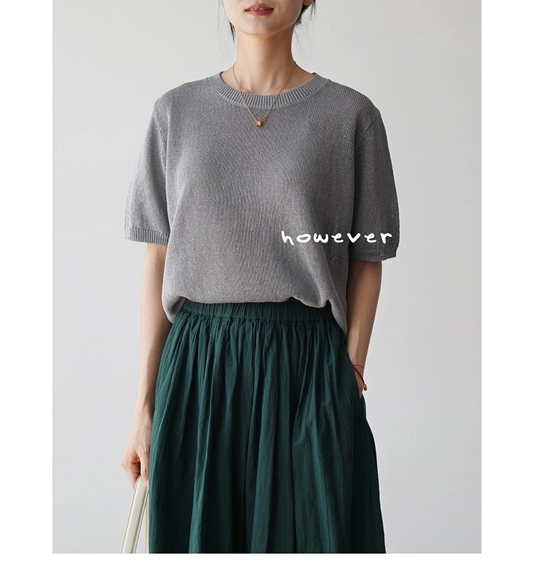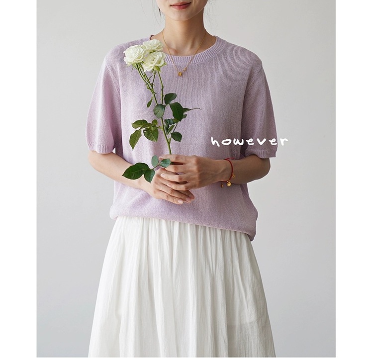 일본 수입 일본 종이 원사 부드럽고 아름다운 라운드 넥 반팔 얇은 스웨터 여성 봄 여름 루즈 슬리밍 다용도 티셔츠