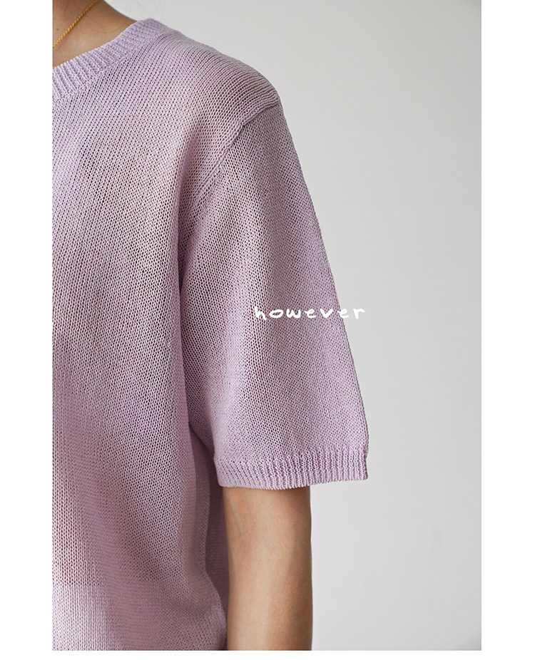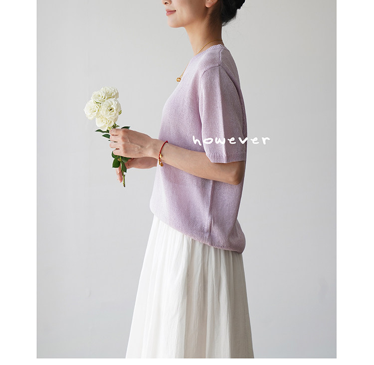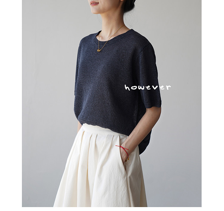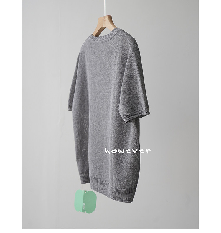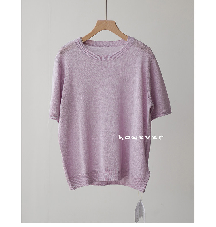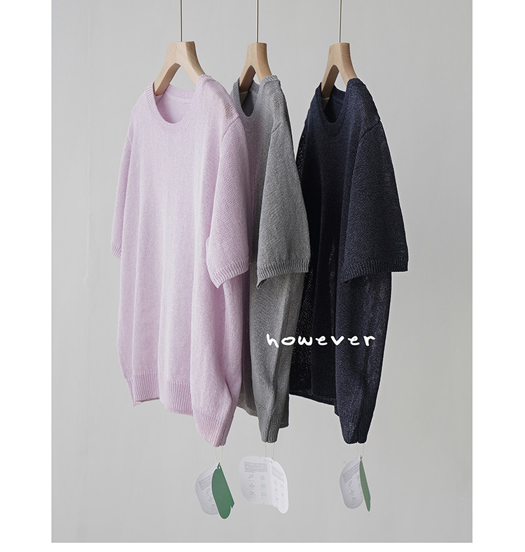 일본 수입 일본 종이 원사 부드럽고 아름다운 라운드 넥 반팔 얇은 스웨터 여성 봄 여름 루즈 슬리밍 다용도 티셔츠스토어 가기