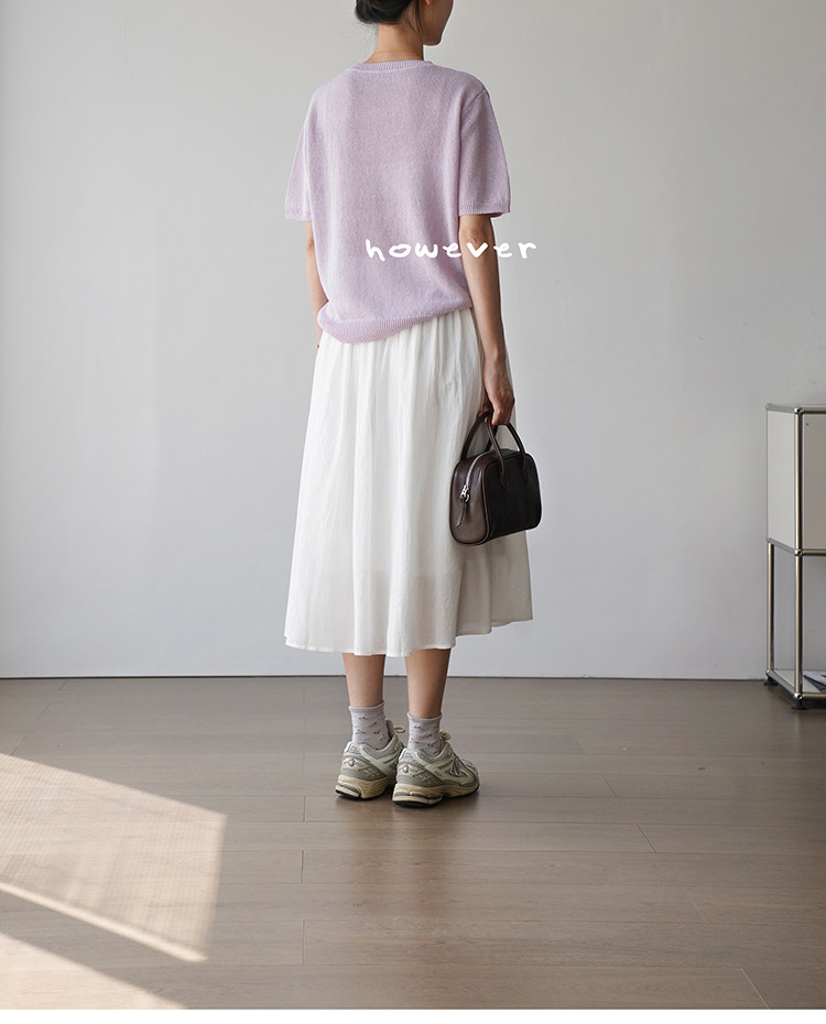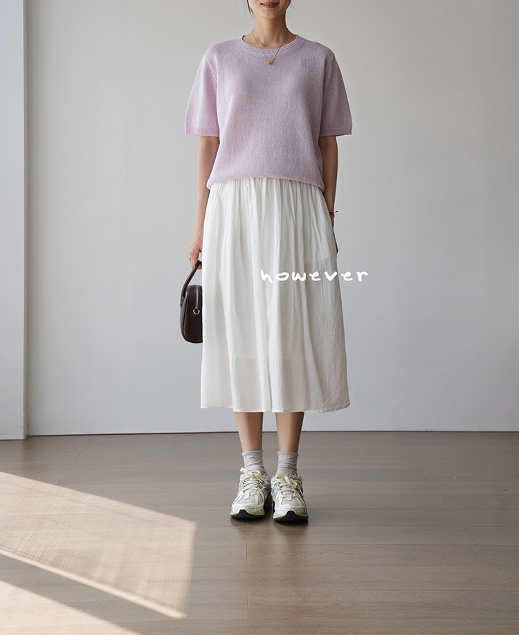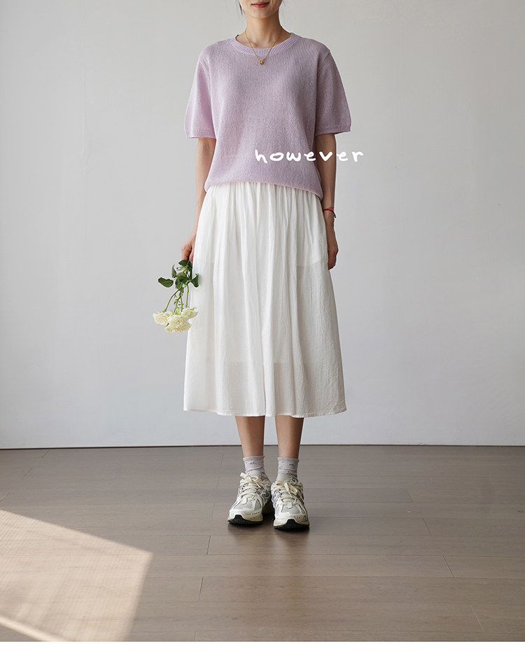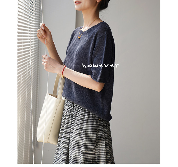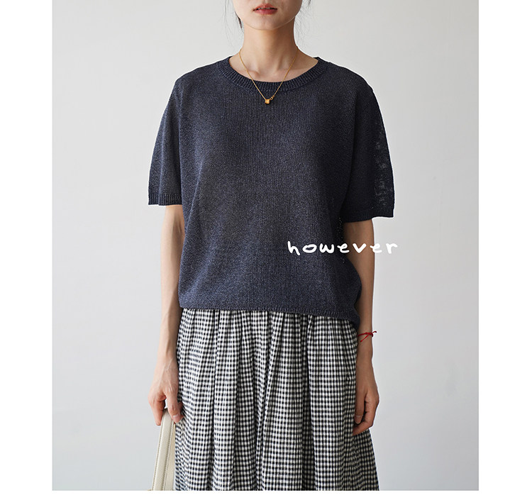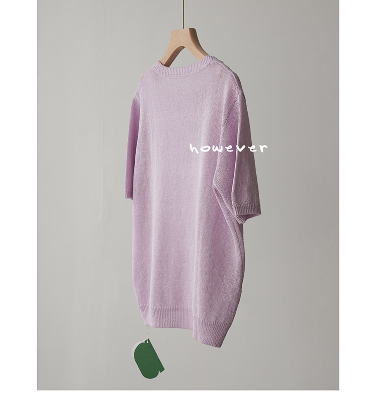 일본 수입 일본 종이 원사 부드럽고 아름다운 라운드 넥 반팔 얇은 스웨터 여성 봄 여름 루즈 슬리밍 다용도 티셔츠스토어 가기