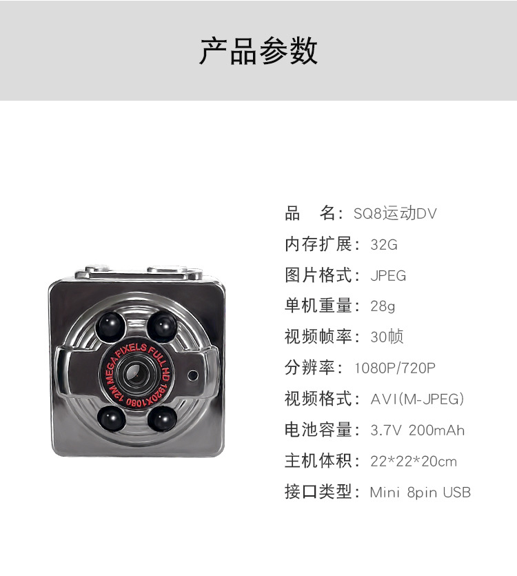SQ8 고화질 스포츠 DV 포켓 휴대용 카메라 감시 카메라 야외 엄지손가락 미니 카메라