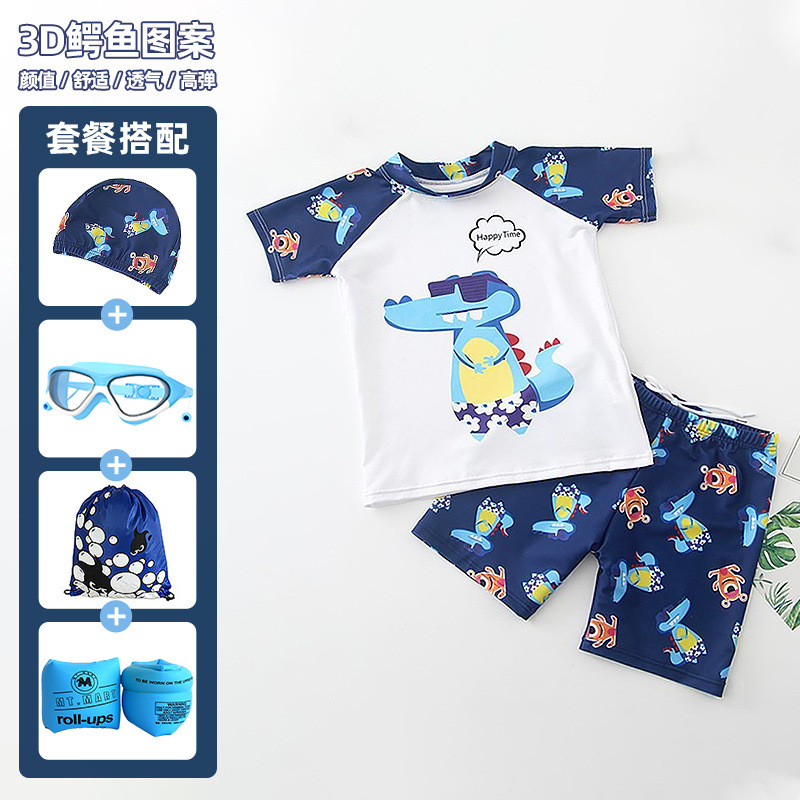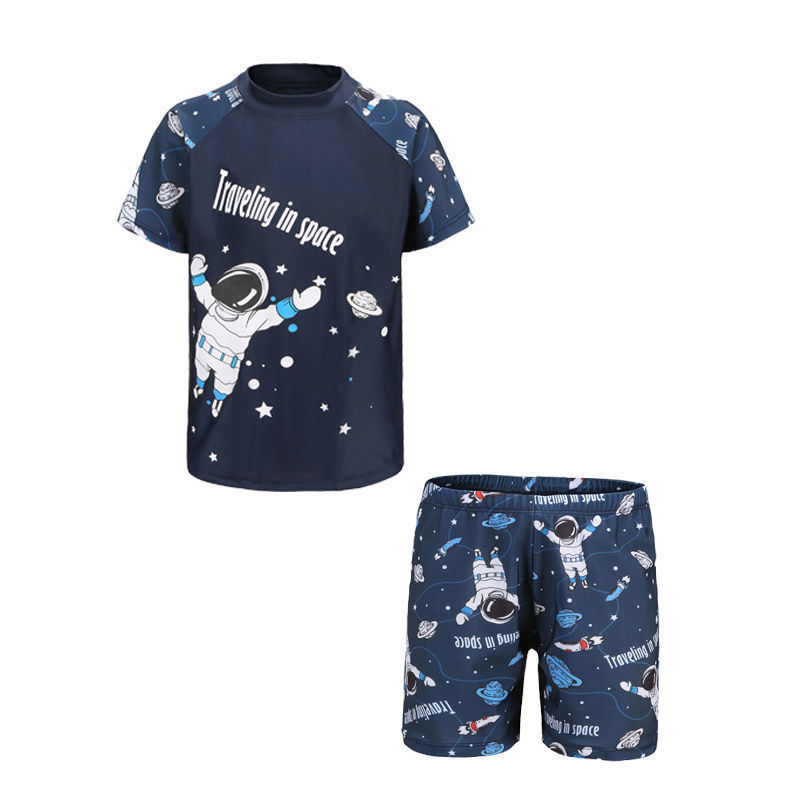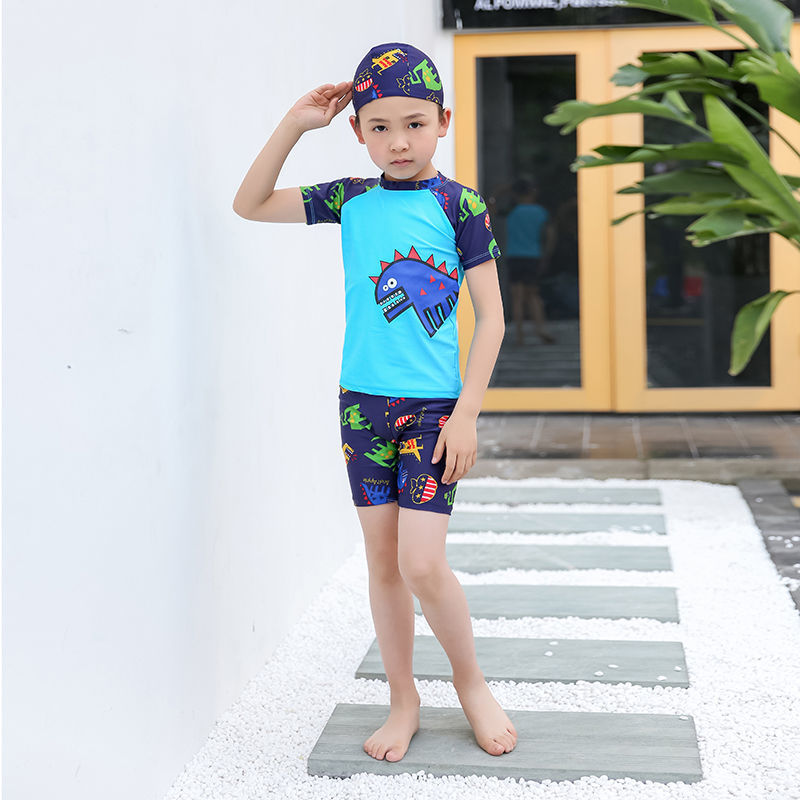 어린이 수영복 남성용 3피스 수영복 큰 어린이, 중간 어린이 및 어린이 만화 프린트 수영복 베이비 비치 수영복