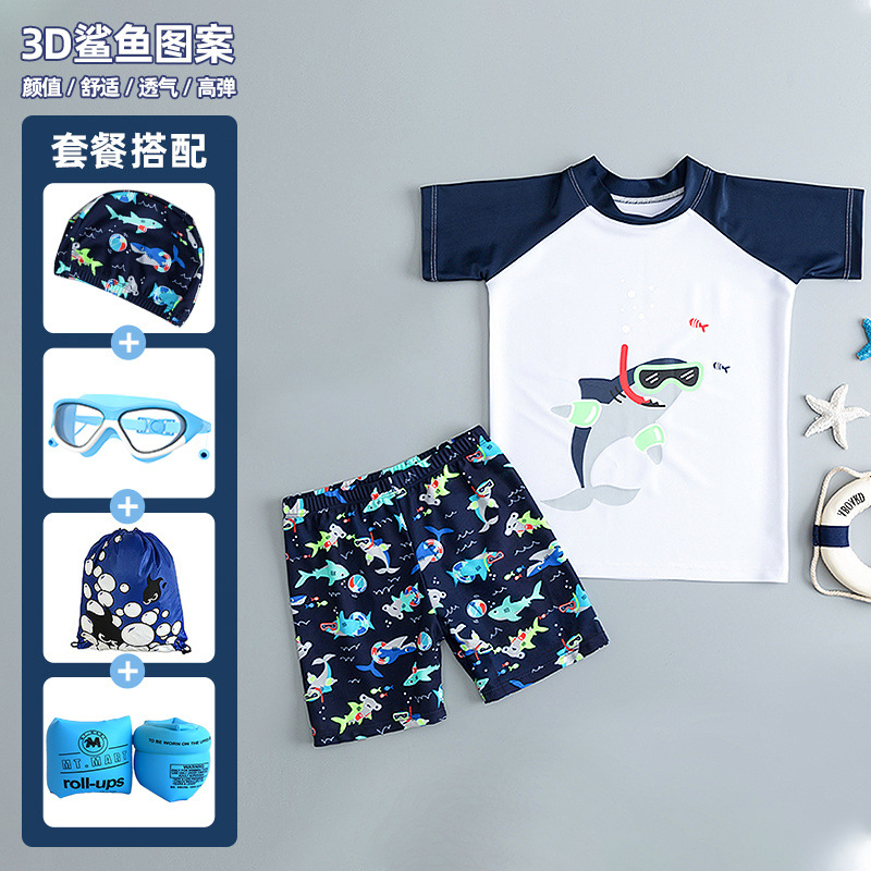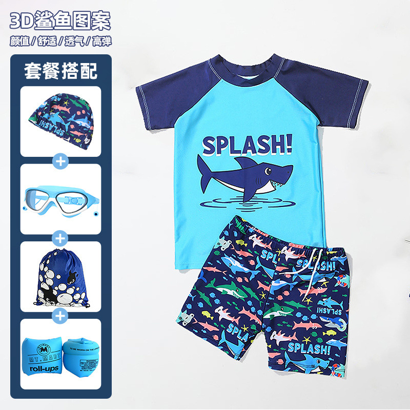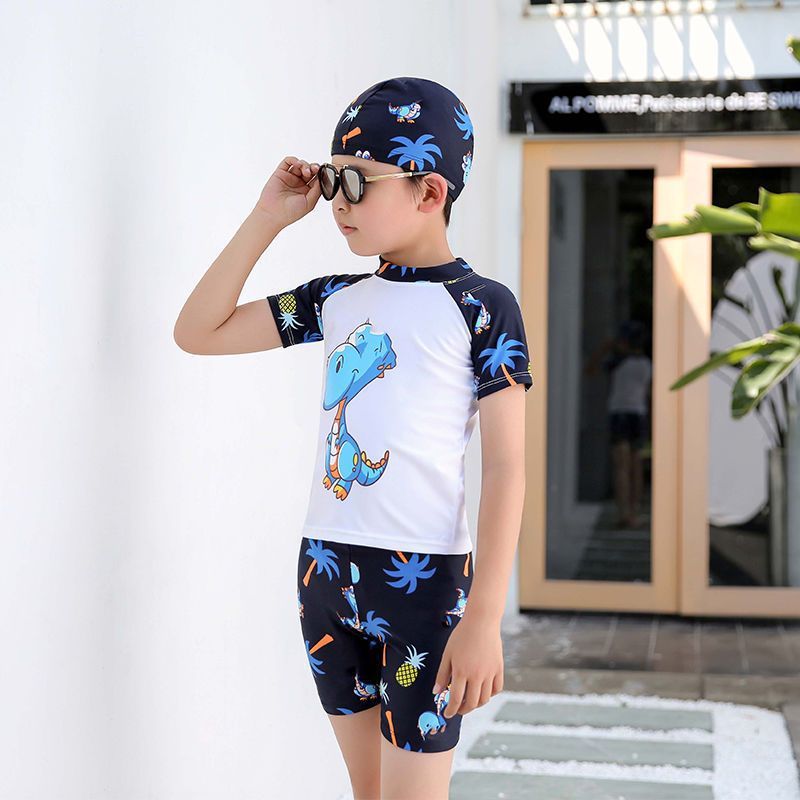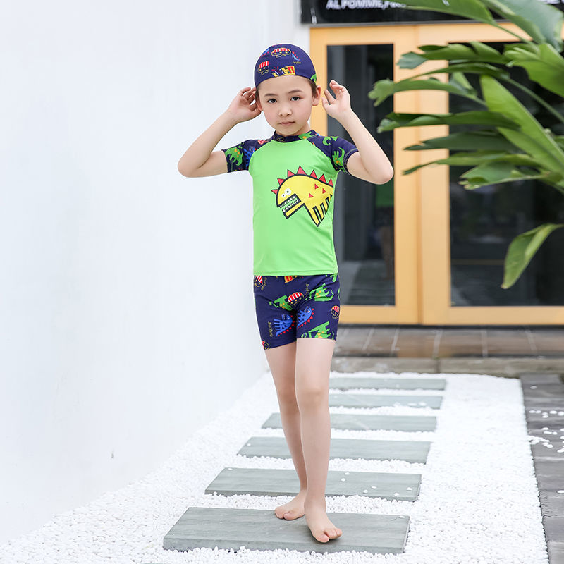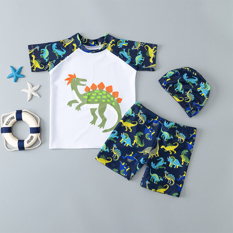 어린이 수영복 남성용 3피스 수영복 큰 어린이, 중간 어린이 및 어린이 만화 프린트 수영복 베이비 비치 수영복스토어 가기