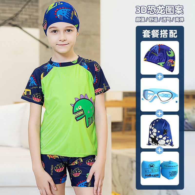 • 녹색 공룡 수영 고글 + 수영 가방 + 워터 슬리브