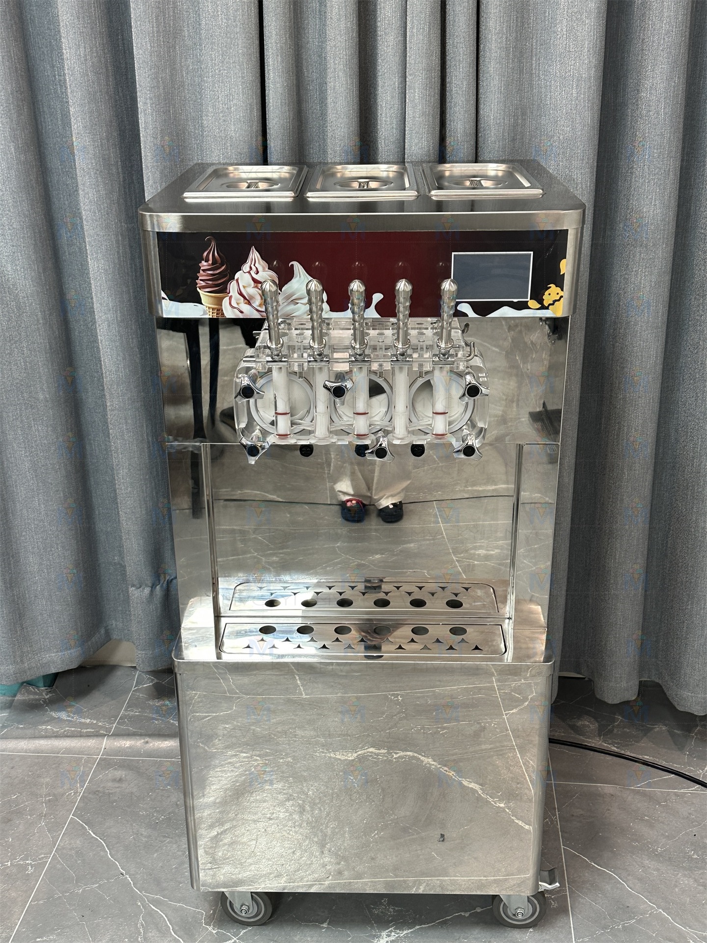 型号:MYS-370T 料缸数量:4 料缸容量:7L 蒸发杠数量:4 蒸发缸容量:2L 产能:一次连打80杯70g雪糕 电压:110V/220V 功率:4300W 机器尺寸:610*810*1440MM 机器重量:180KG |