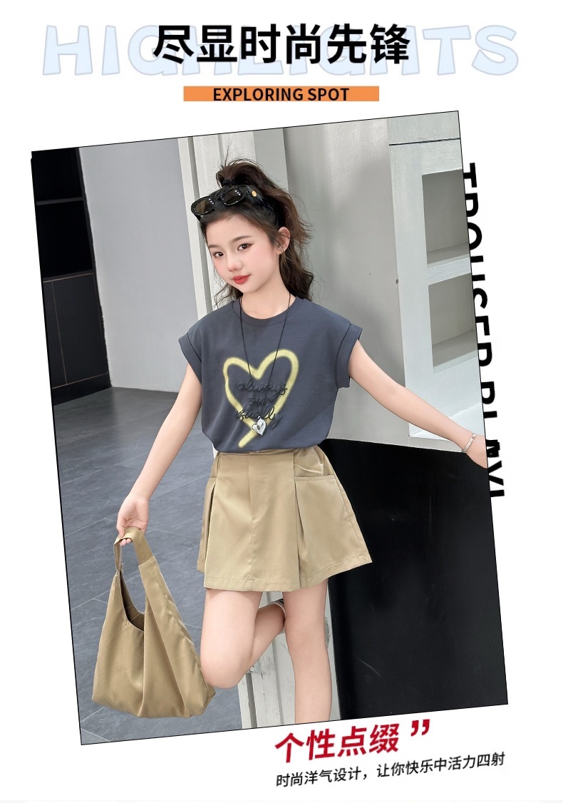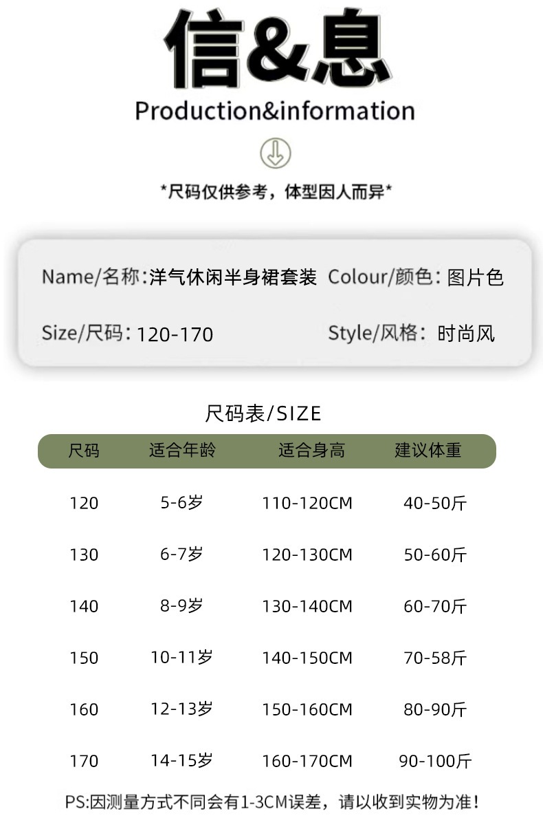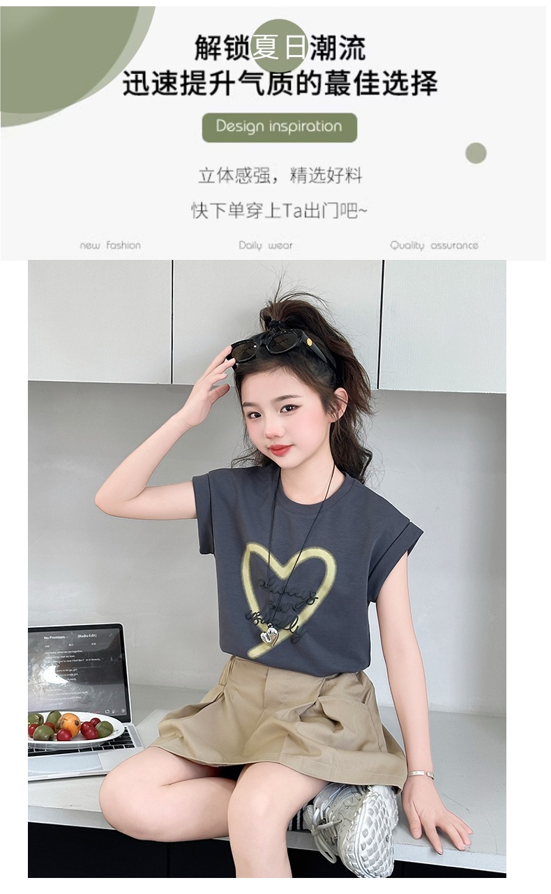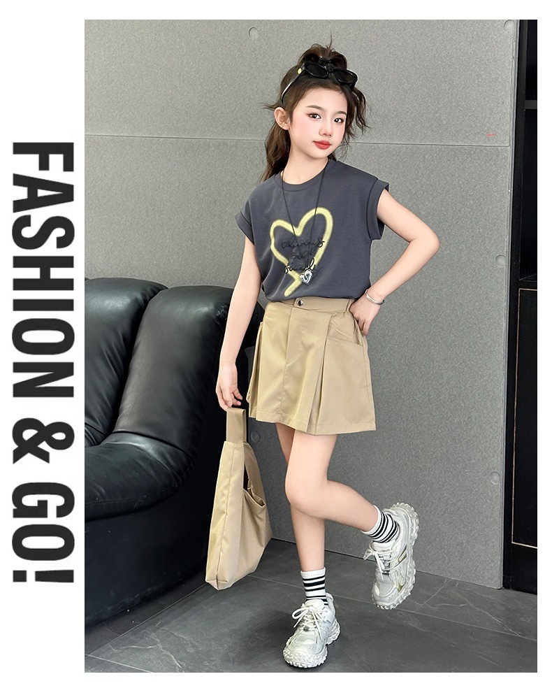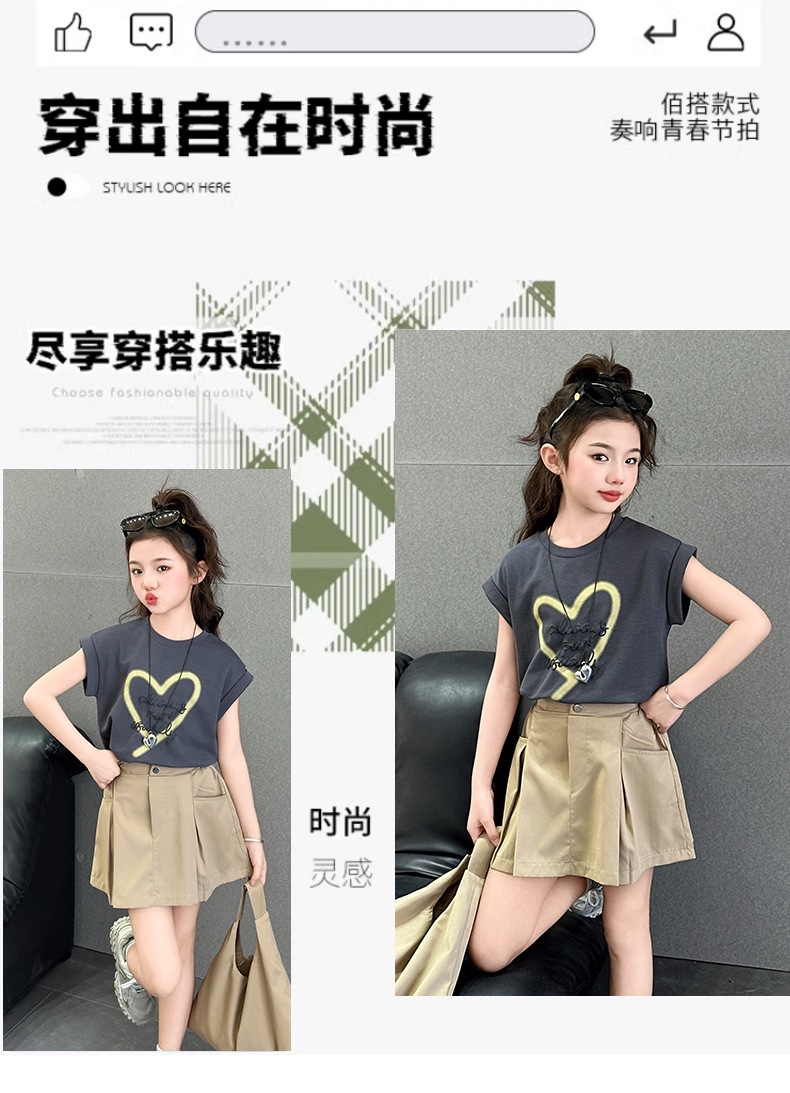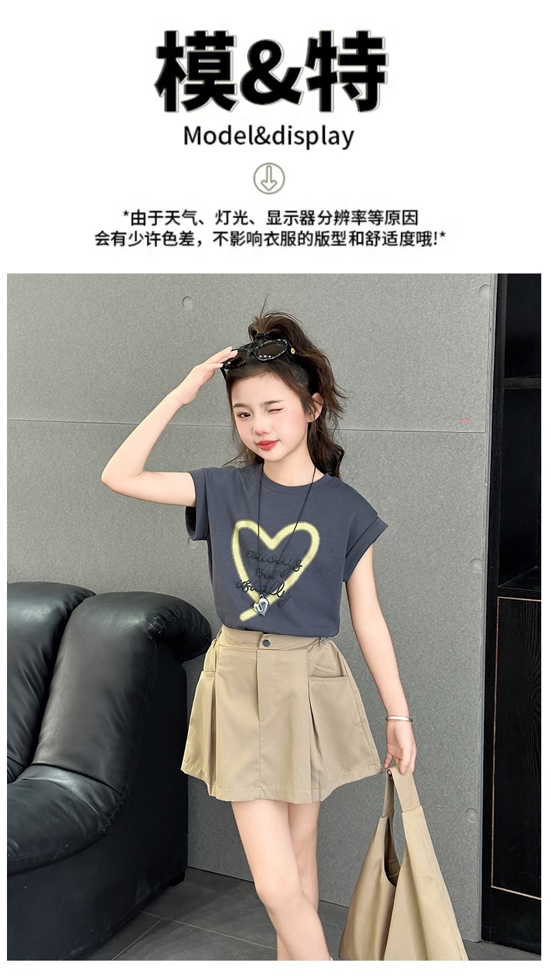 여자 반팔 양복 2025 새로운 어린이 인쇄 사랑 반팔 티셔츠 여자 스커트 투피스 세트