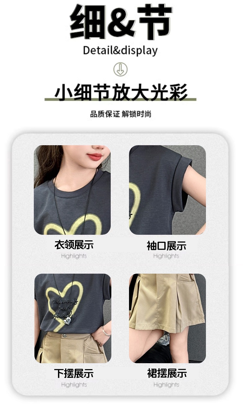 여자 반팔 양복 2025 새로운 어린이 인쇄 사랑 반팔 티셔츠 여자 스커트 투피스 세트스토어 가기