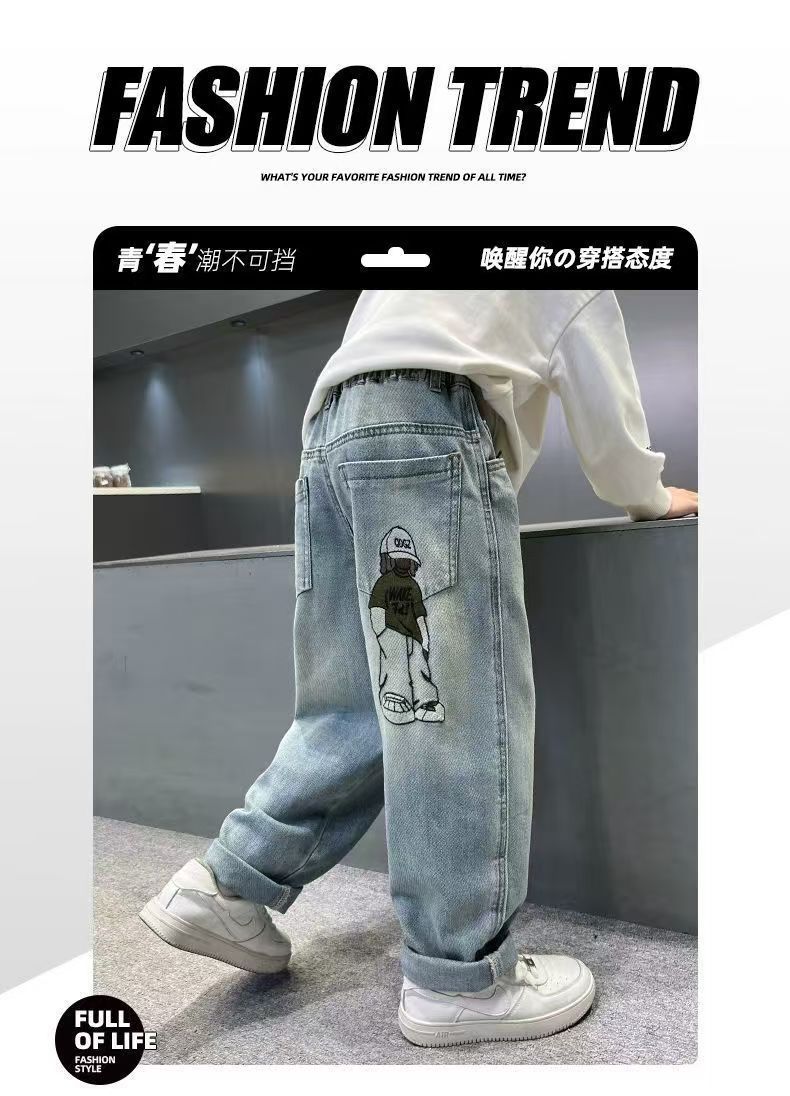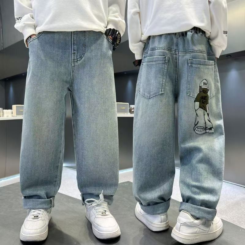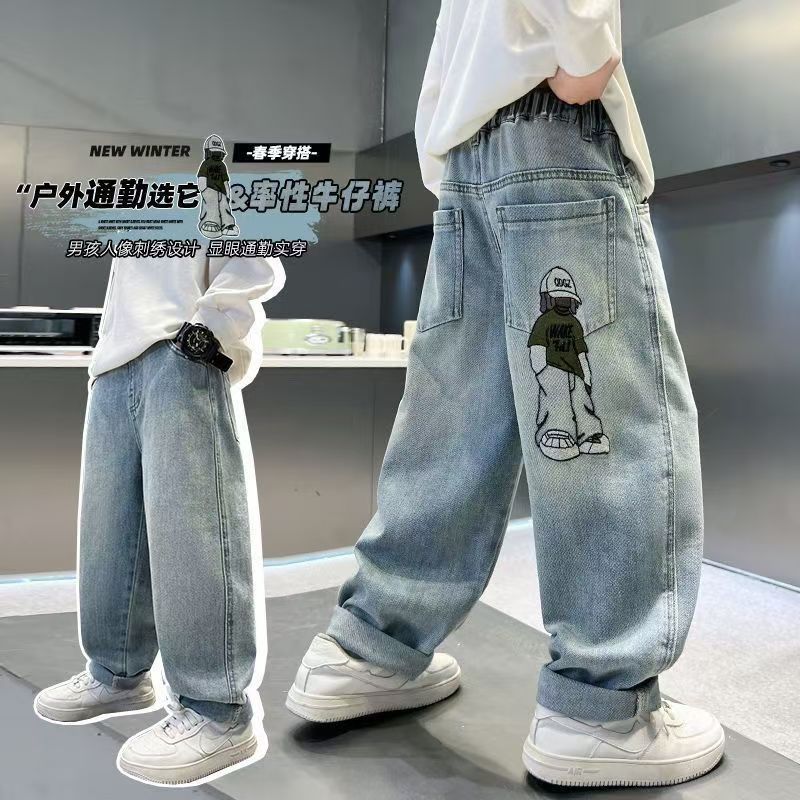 소년 바지 봄, 가을 2025 새로운 스타일 소년 가을 캐주얼 바지 멋진 멋진 가을 바지 어린이 청바지스토어 가기