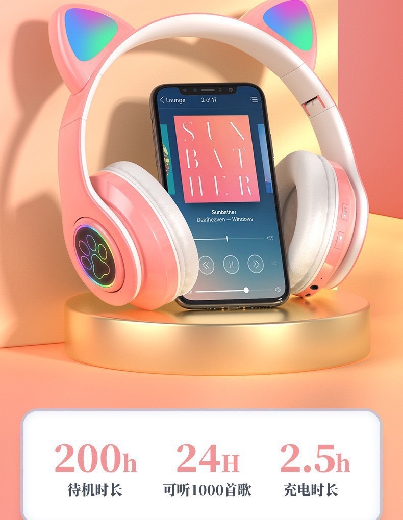 새로운 머리 장착형 고양이 귀 블루투스 헤드셋 B39 고양이 귀 무선 중저음 LED 게임 스포츠 공장 직접 판매스토어 가기