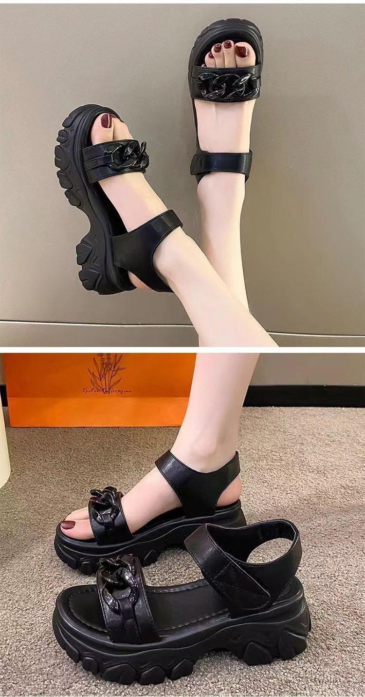 여성용 로마 샌들 2025 새로운 스타일 캐주얼 다재다능하고 피곤하지 않은 두꺼운 밑창 아우터웨어 비치 여성용 스커트 신발