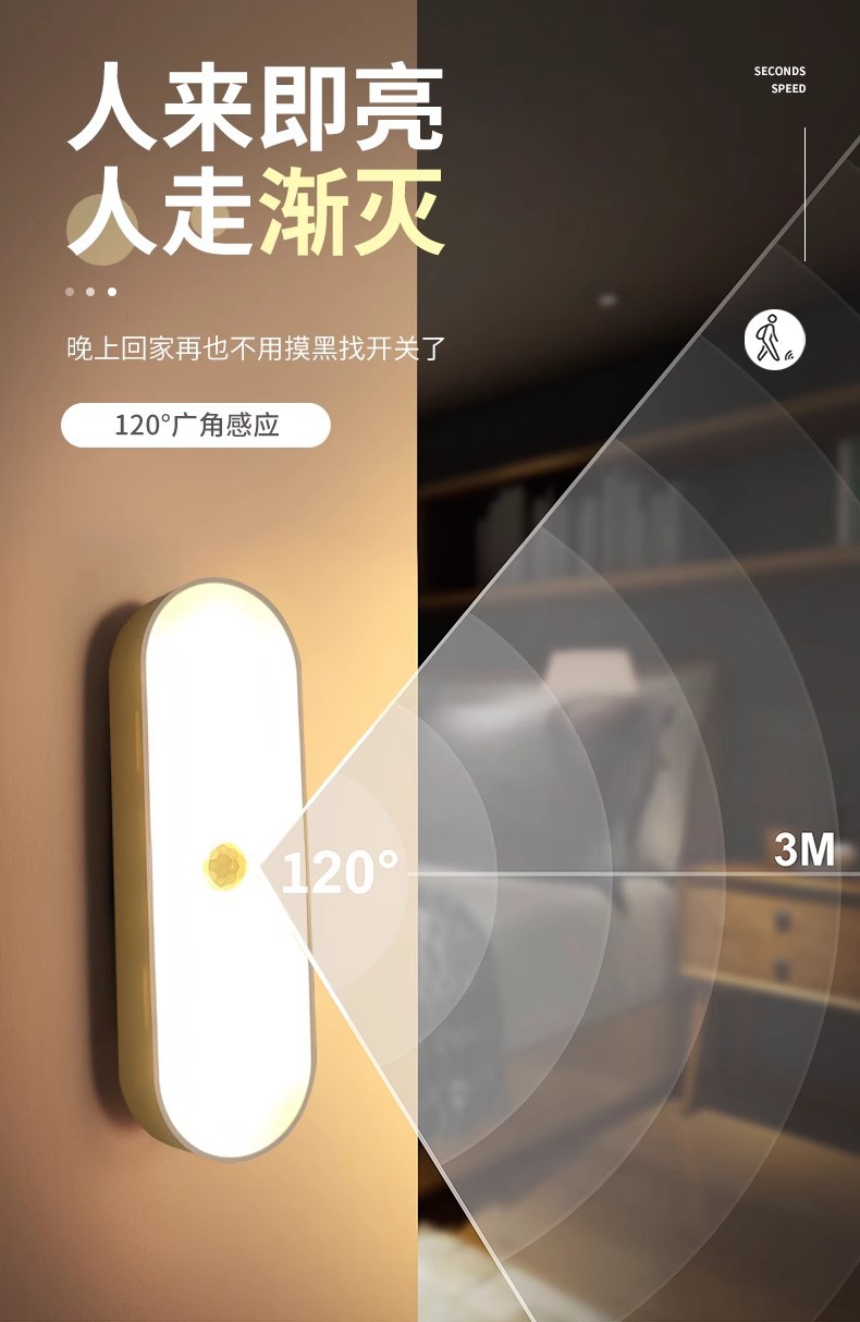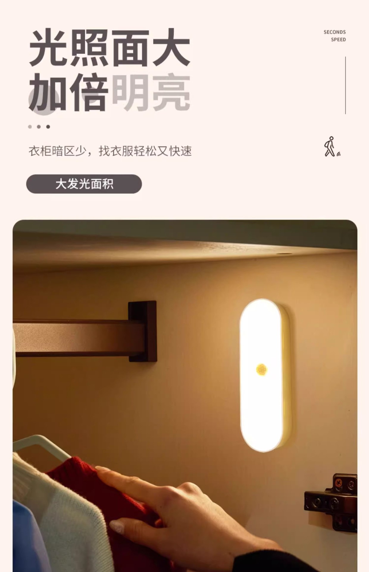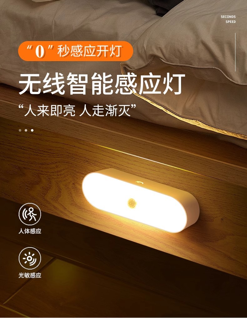 인체 유도 야간 조명 홈 통로 계단 음성 제어 지능형 복도 조명 제어 스트립 침대 옆 램프 옷장 충전스토어 가기