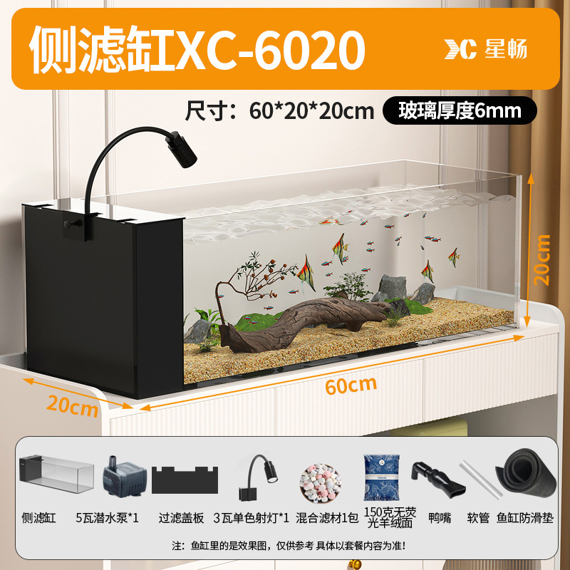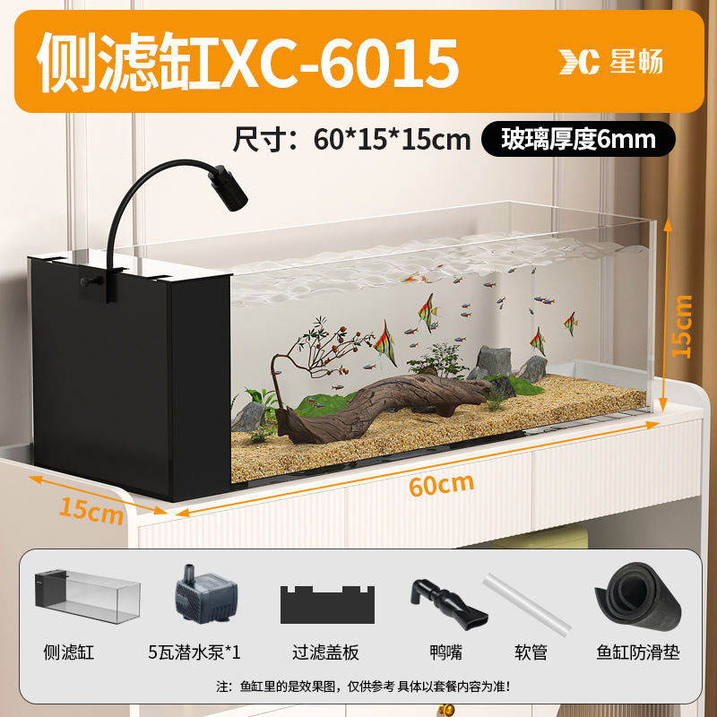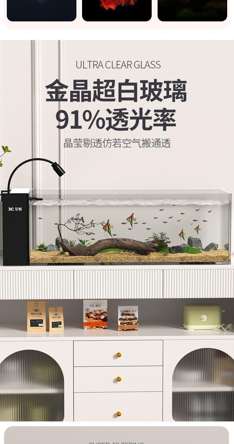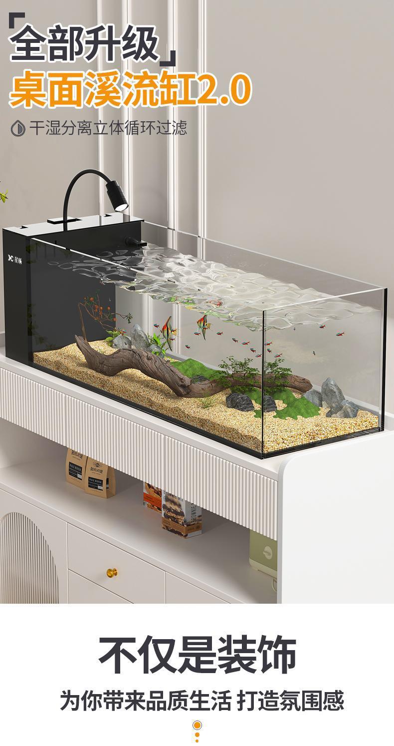 2025 새로운 스트림 탱크 물고기 탱크 산소 발생기 일체형 거실 골드 크리스탈 슈퍼 화이트 측면 필터 소형 유리 조경 풀 세트스토어 가기