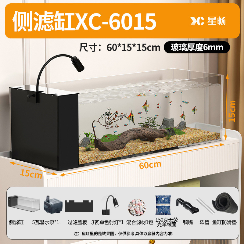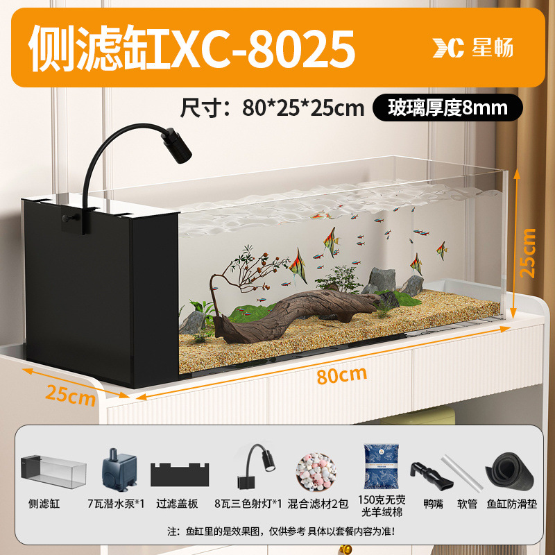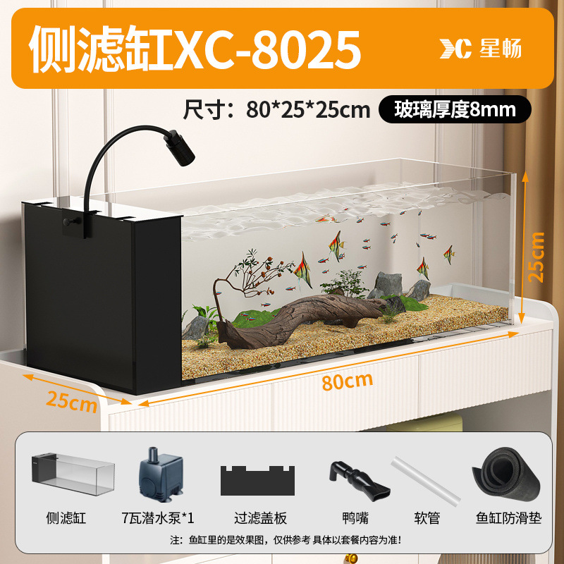 2025 새로운 스트림 탱크 물고기 탱크 산소 발생기 일체형 거실 골드 크리스탈 슈퍼 화이트 측면 필터 소형 유리 조경 풀 세트