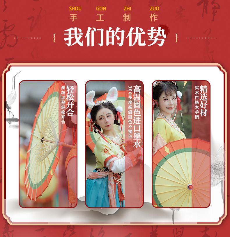 Baowu Jinghong 우산 댄스 소품 클래식 댄스 우산 소녀와 어린이 전문 성능 우산 오일 종이 우산 대나무 없음스토어 가기