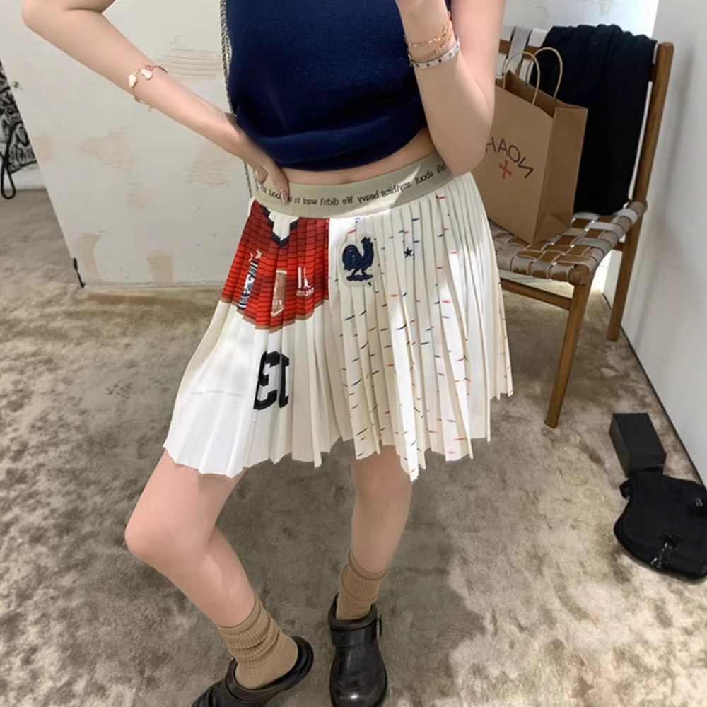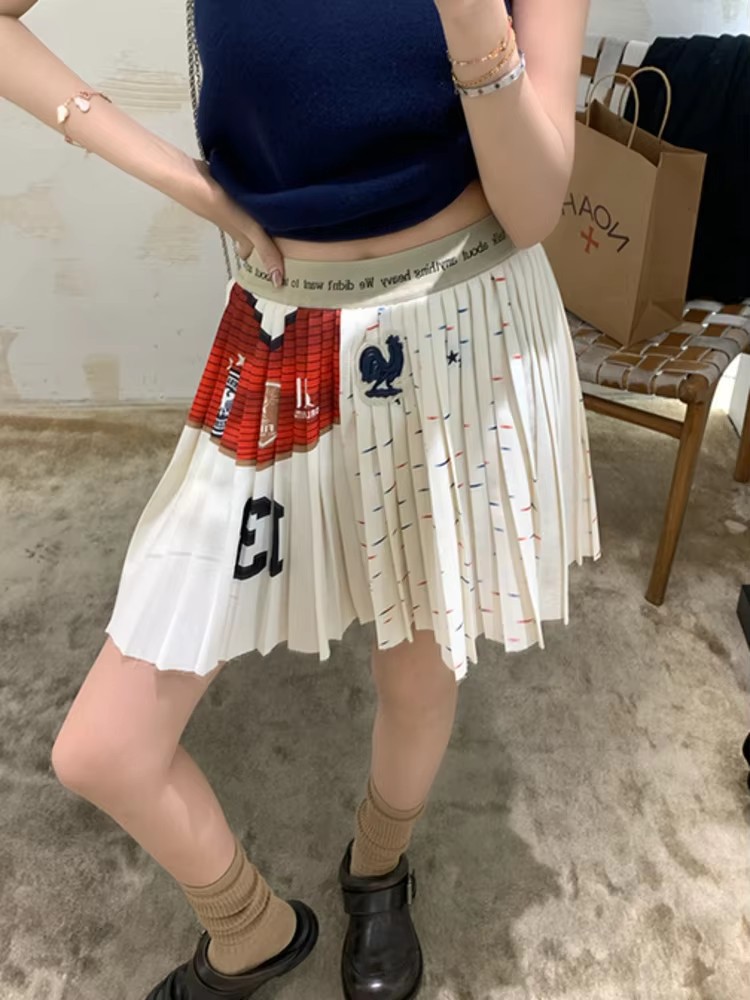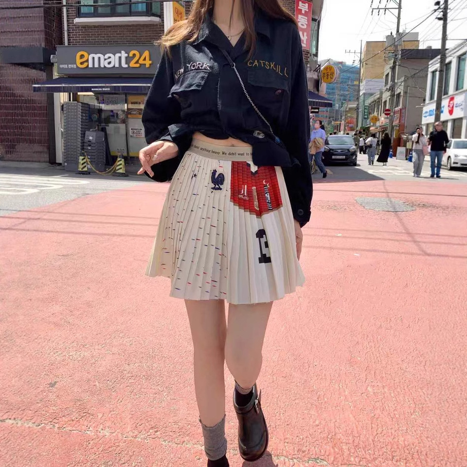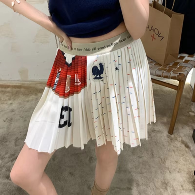 플리츠 스커트 자수 프린트 만화 디자인 트렌디 여성 캐주얼 다용도 스커트 자카드 화이트 플리츠 스커트 여름스토어 가기