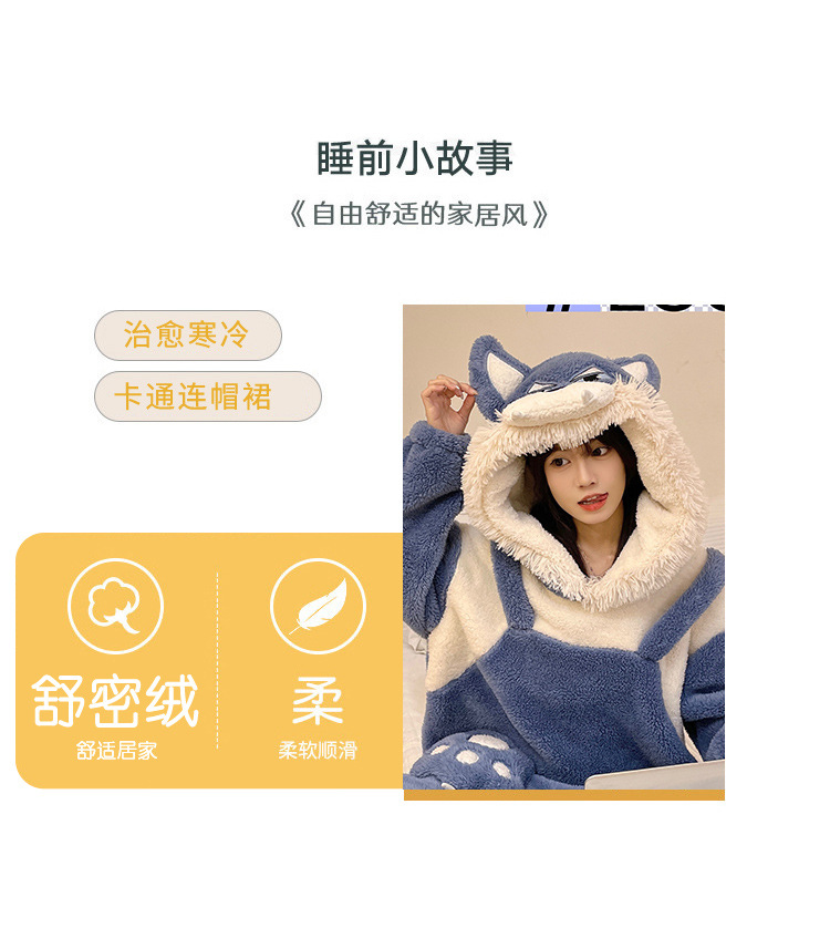 여성을위한 큰 늑대 잠옷 2025 가을, 겨울 만화 잠옷 후드 산호 벨벳 두꺼운 커플 홈웨어 세트 남성용스토어 가기