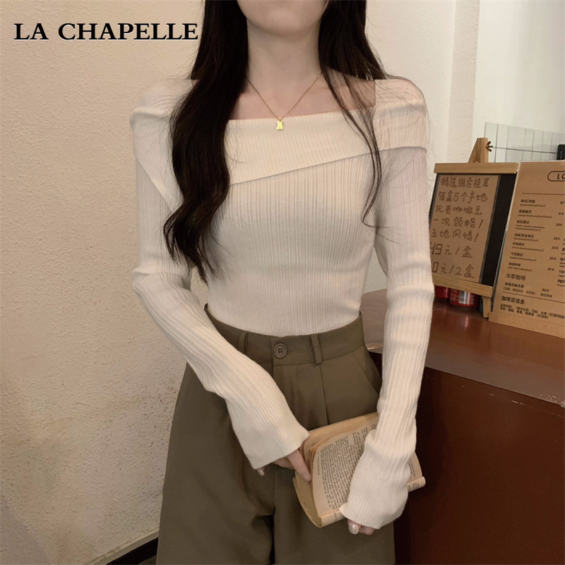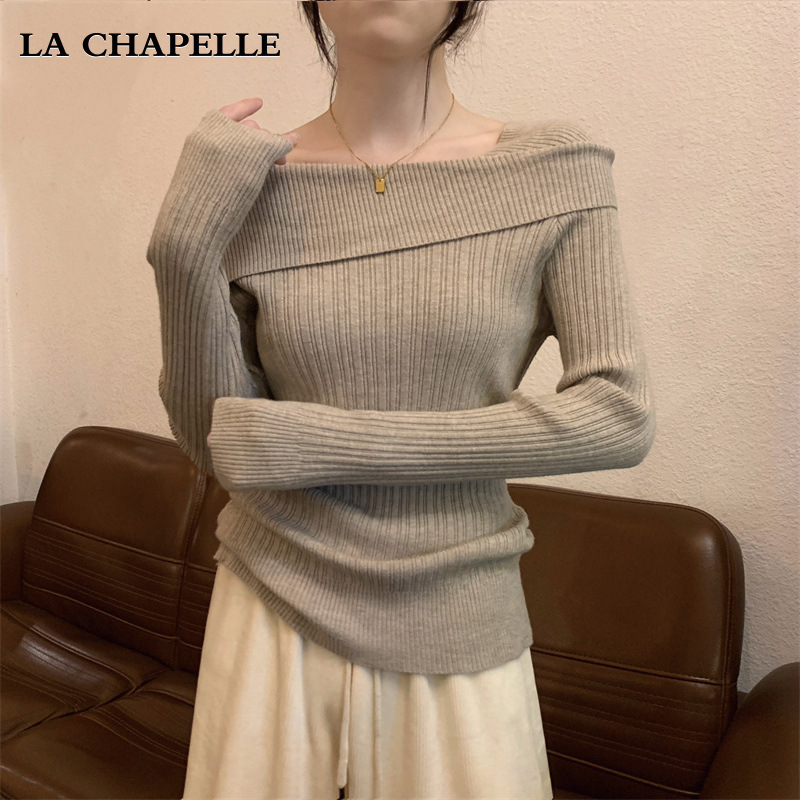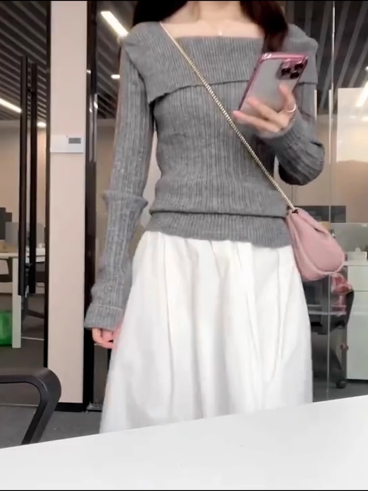 2025년 초봄 신상 여성 프렌치 원숄더 그레이 스웨터, 레이지 스타일 오프숄더 이너 스웨터 탑