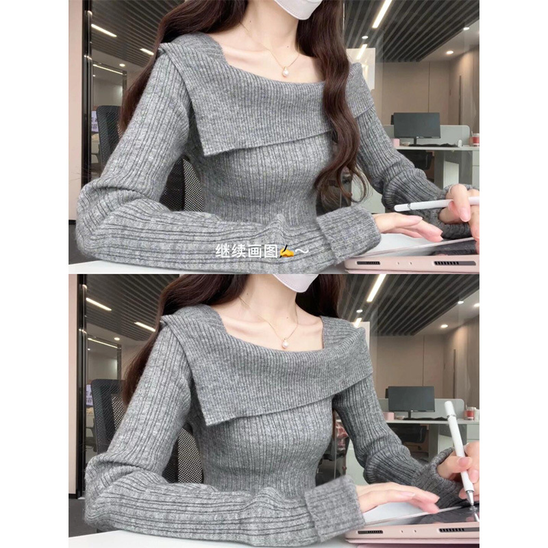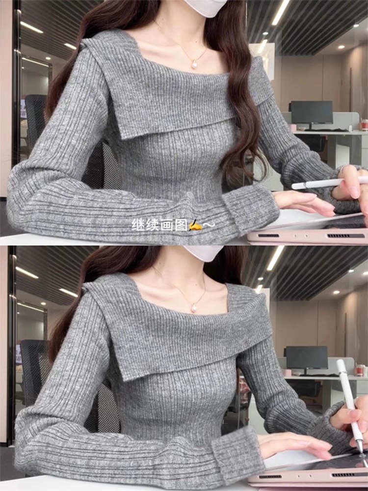 2025년 초봄 신상 여성 프렌치 원숄더 그레이 스웨터, 레이지 스타일 오프숄더 이너 스웨터 탑스토어 가기