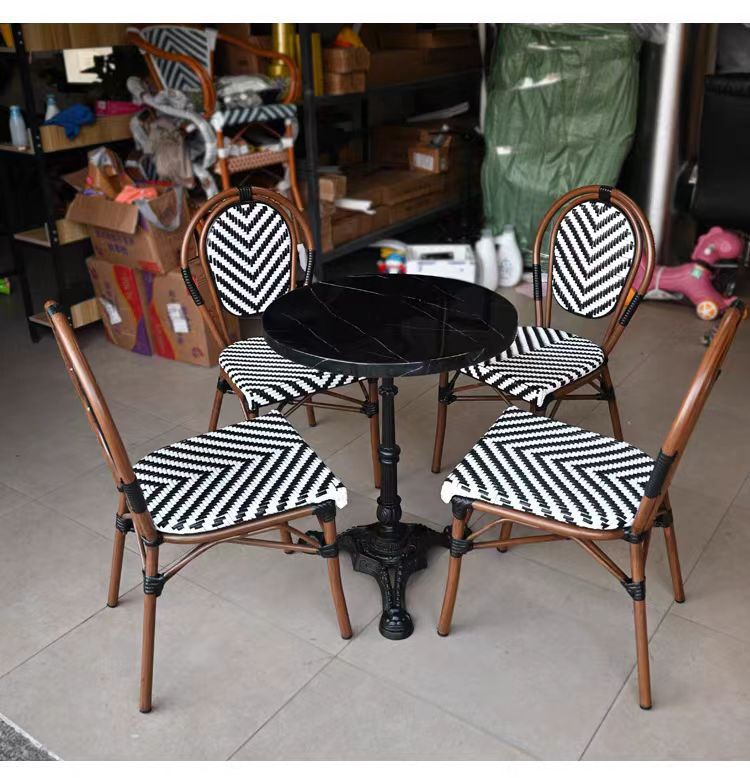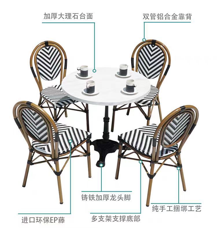 야외 테이블과 의자, 야외 프렌치 가든 레저 등나무 의자, 대리석 식탁, 밀크티 가게, 카페 테이블과 의자 조합스토어 가기