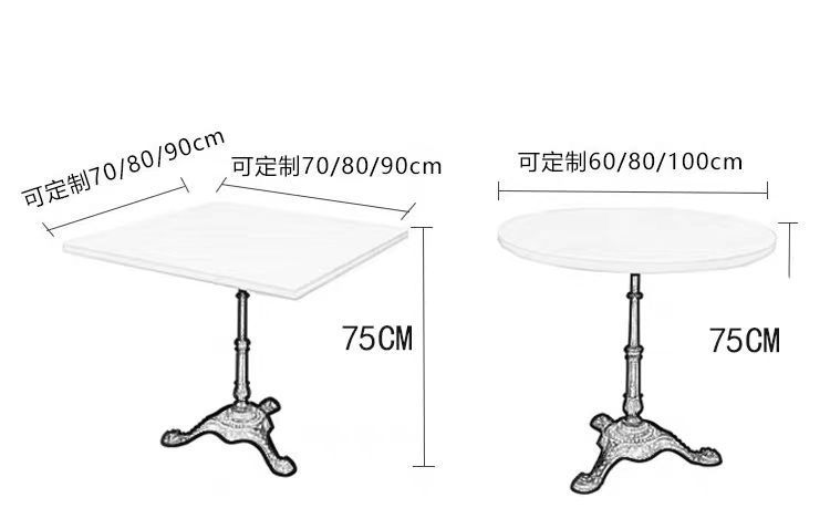 • 70 대리석 원형 테이블(말굽 포함)
