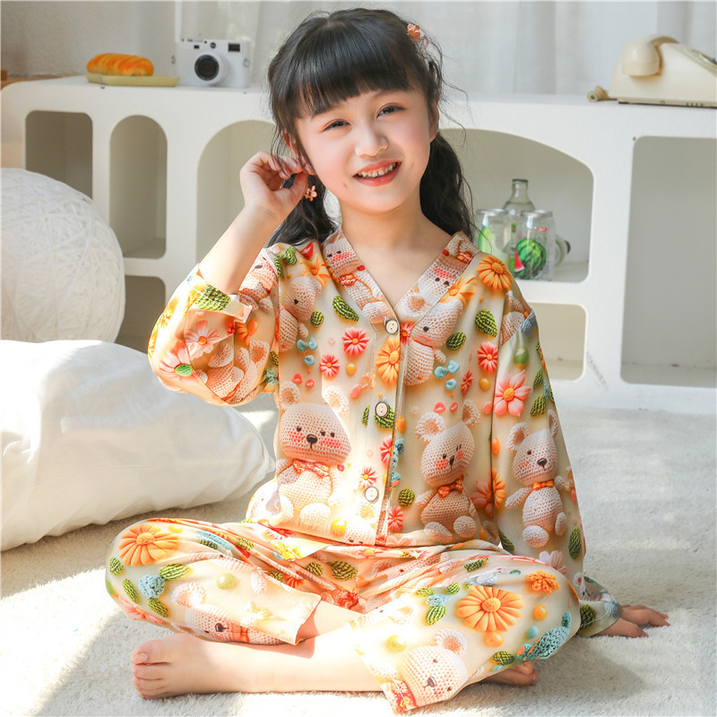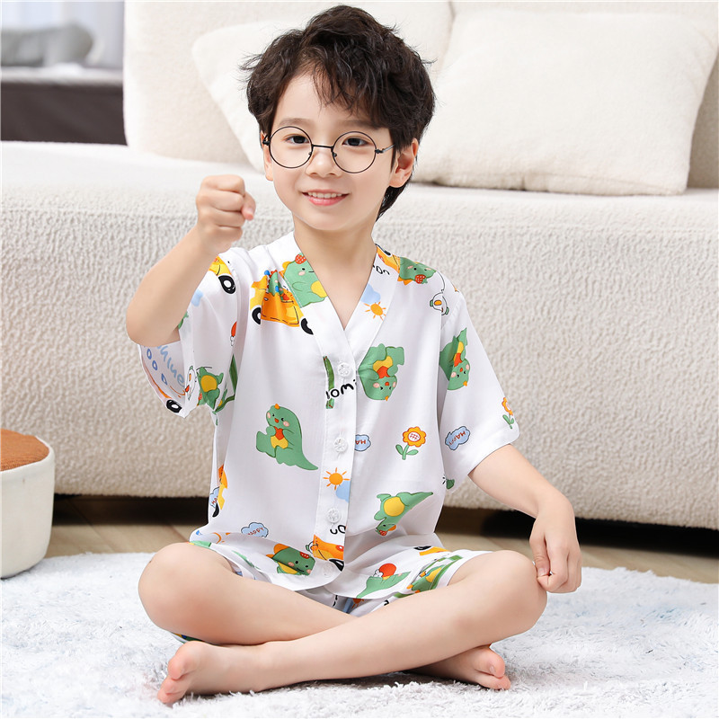 2025 여름 아동 잠옷 얇은 긴팔 면 실크 에어컨 옷 중대형 어린이 남아 여아 홈웨어 반팔스토어 가기