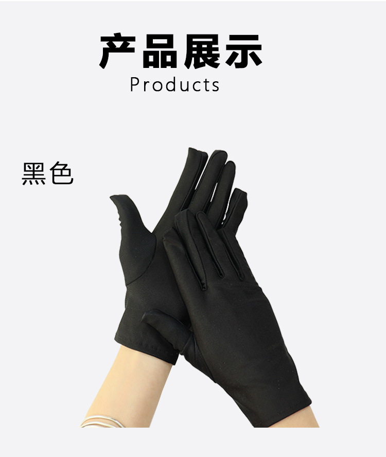 봄과 여름 얇은 선물 태양 보호 남성과 여성의 에티켓 고탄성 보석 댄스 공연 스판덱스 솔리드 컬러 짧은 장갑 도매
