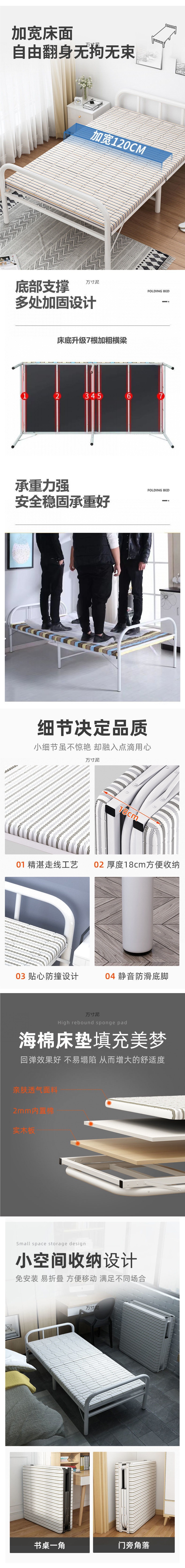 접이식 침대 싱글 침대 휴대용 가정용 성인 임대실 낮잠 간단한 사무실 점심 시간 동반자 단단한 철판 철제 침대스토어 가기