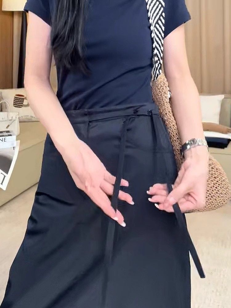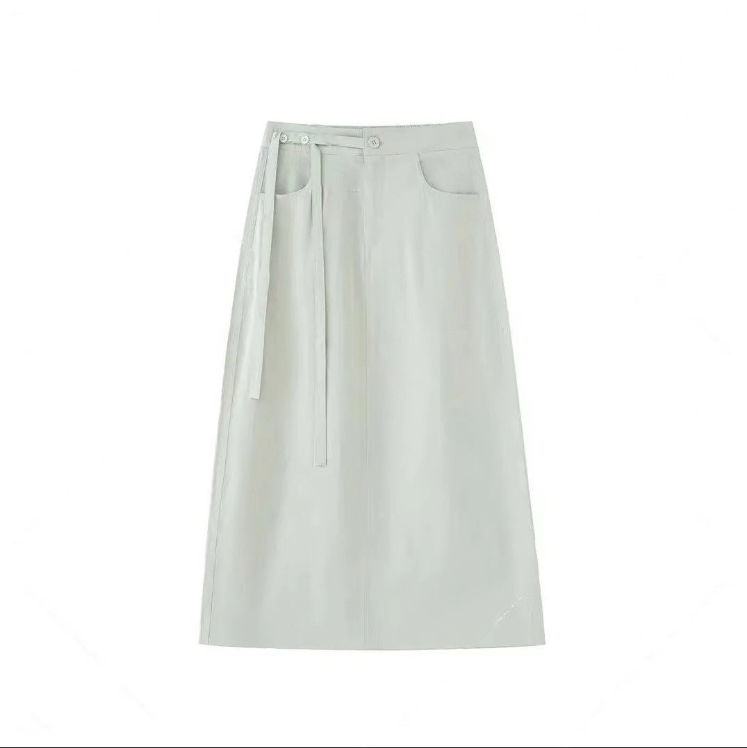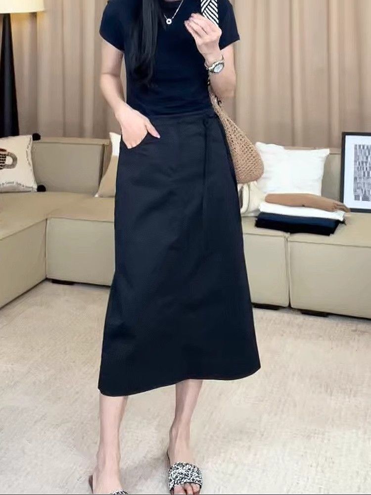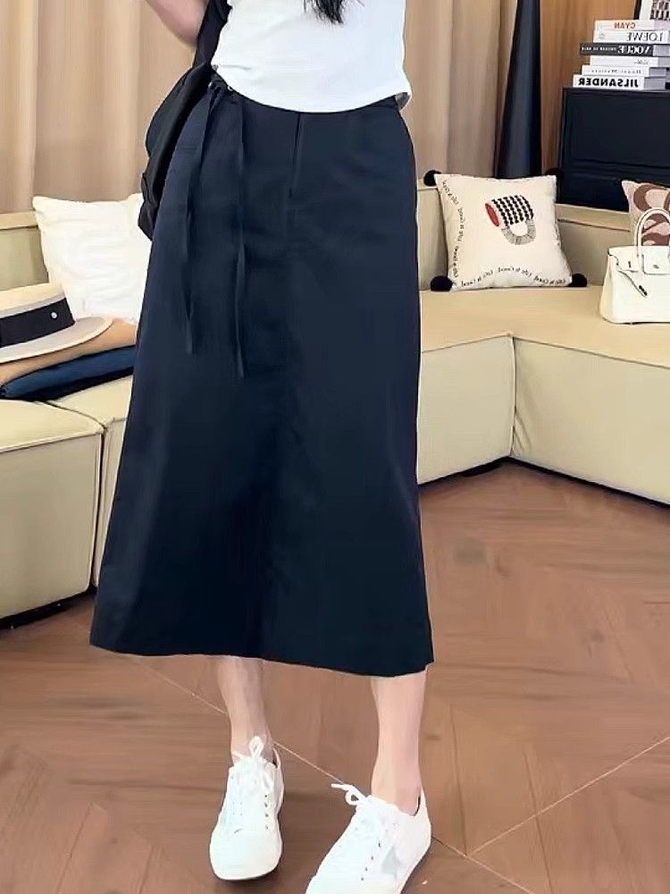 하이웨이스트 백 슬릿 레이스업 스트레이트 스커트, 미드기장, 활용도 높은 여름 신상 루즈한 미드기장 스커트