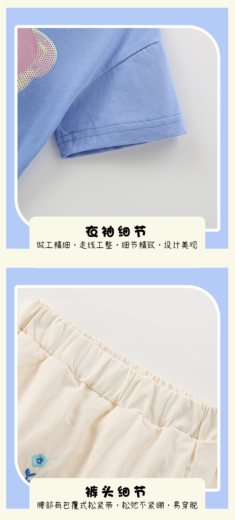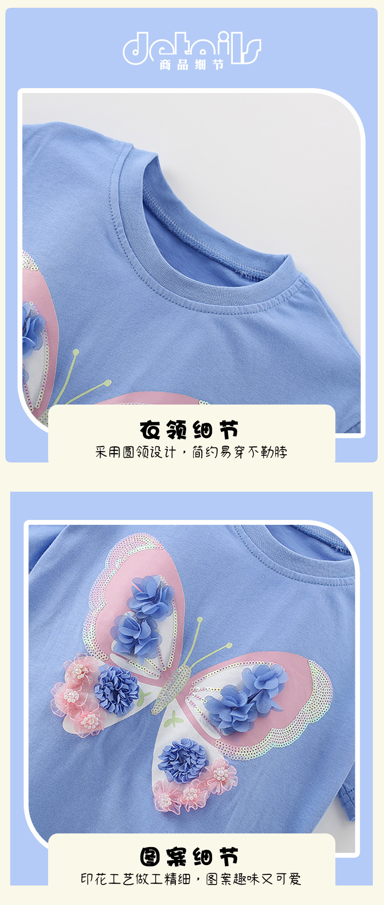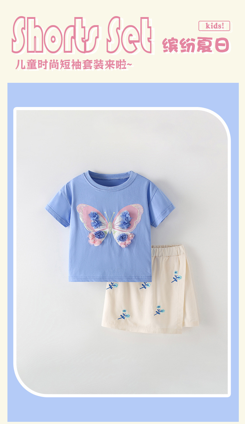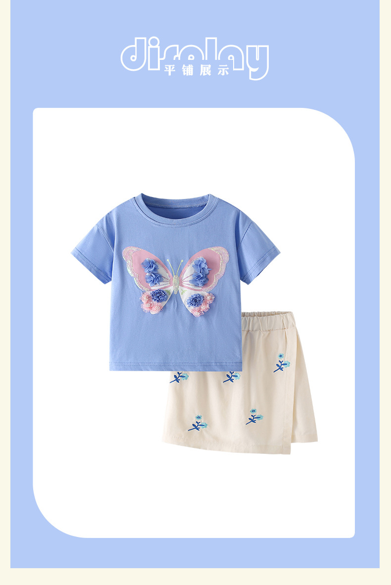 국경 간 malwee 여자 정장 스커트 여름 유럽과 미국의 라운드 넥 티셔츠 반팔 귀여운 어린이 스타일 투피스 세트