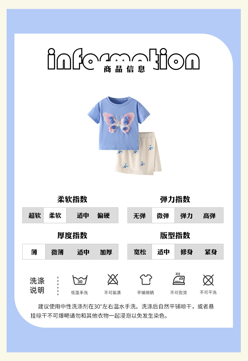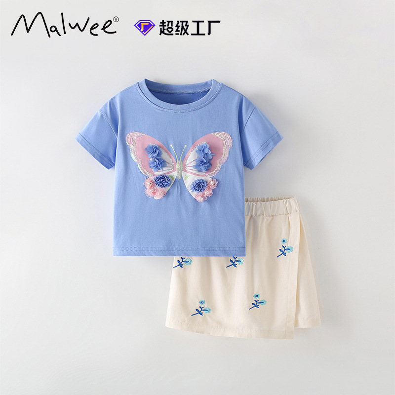 국경 간 malwee 여자 정장 스커트 여름 유럽과 미국의 라운드 넥 티셔츠 반팔 귀여운 어린이 스타일 투피스 세트스토어 가기