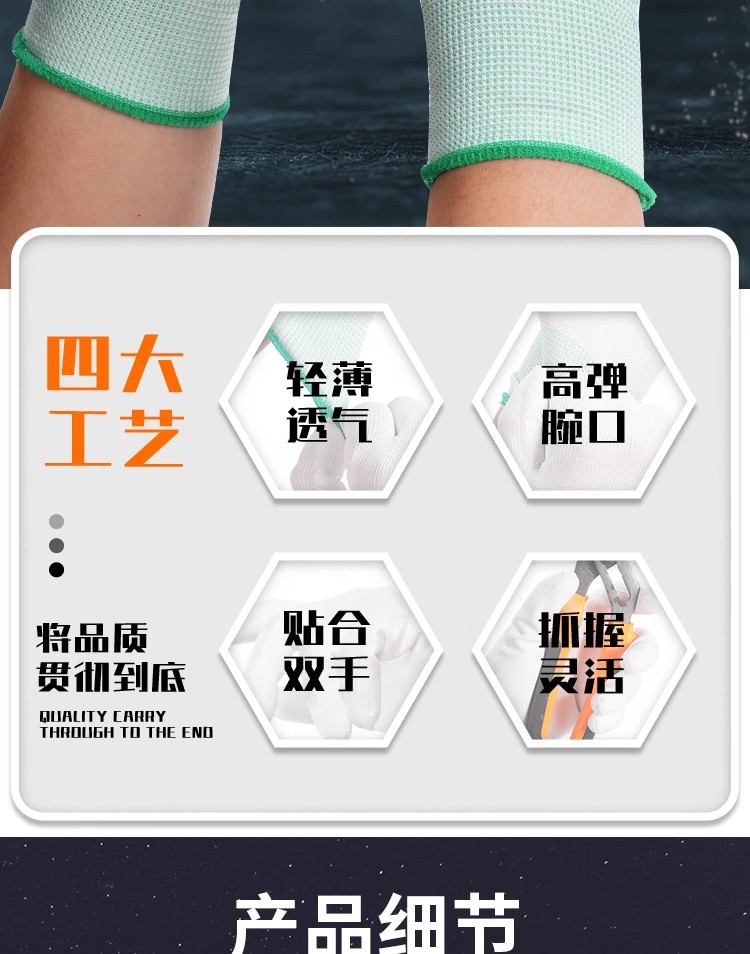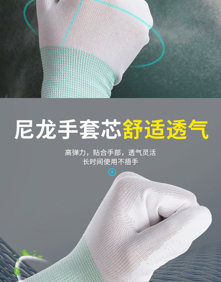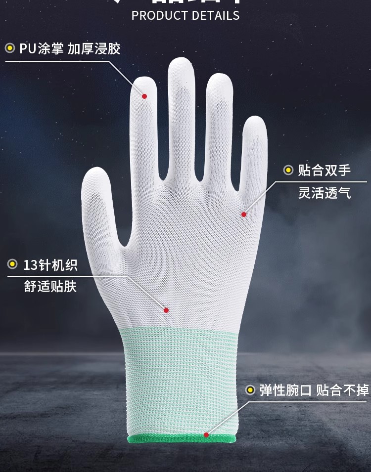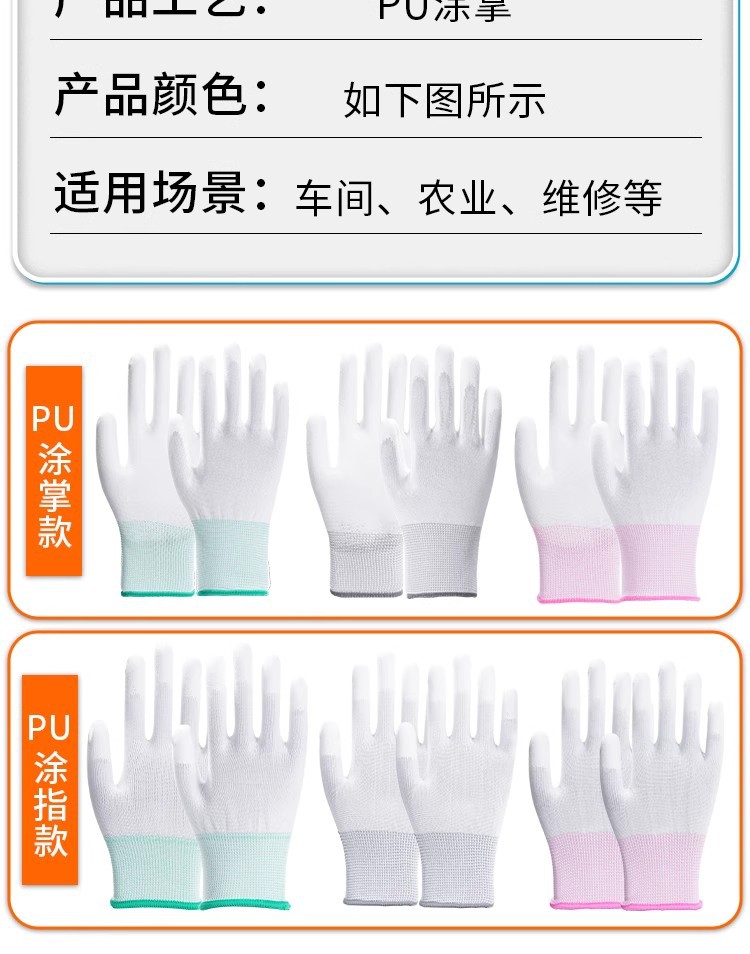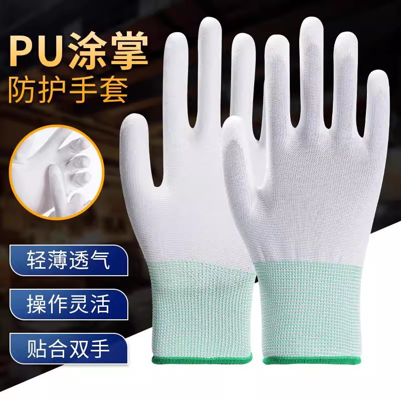 얇은 흰색 나일론 PU 코팅 손가락과 손바닥 장갑 정전기 방지 먼지 없는 전자 공장 통기성 고무 노동 보호 장갑스토어 가기