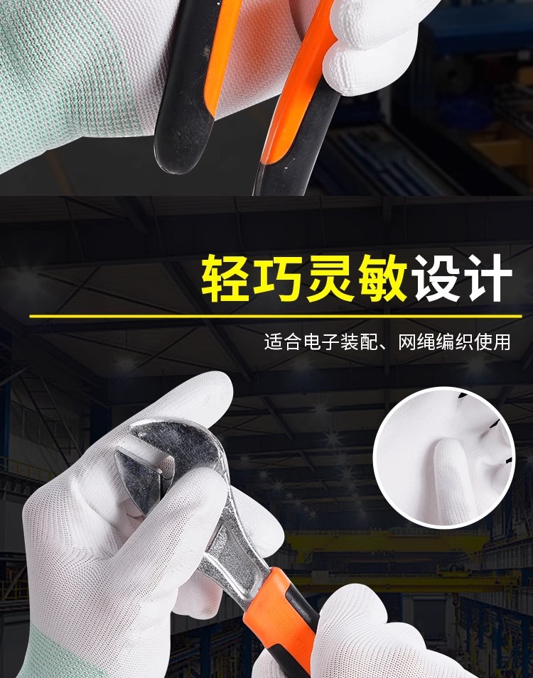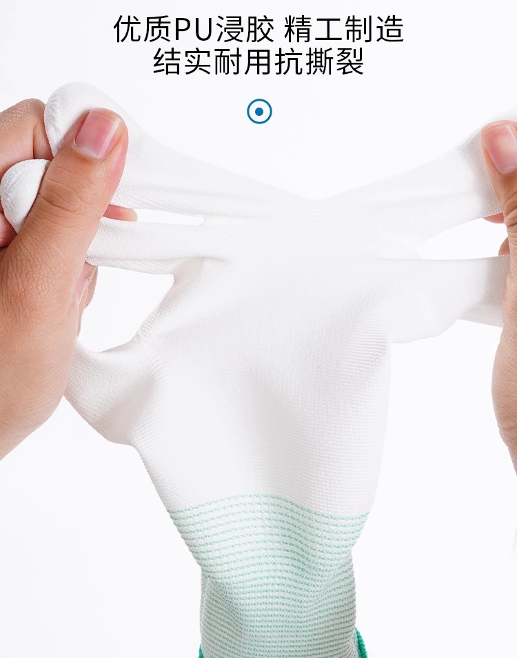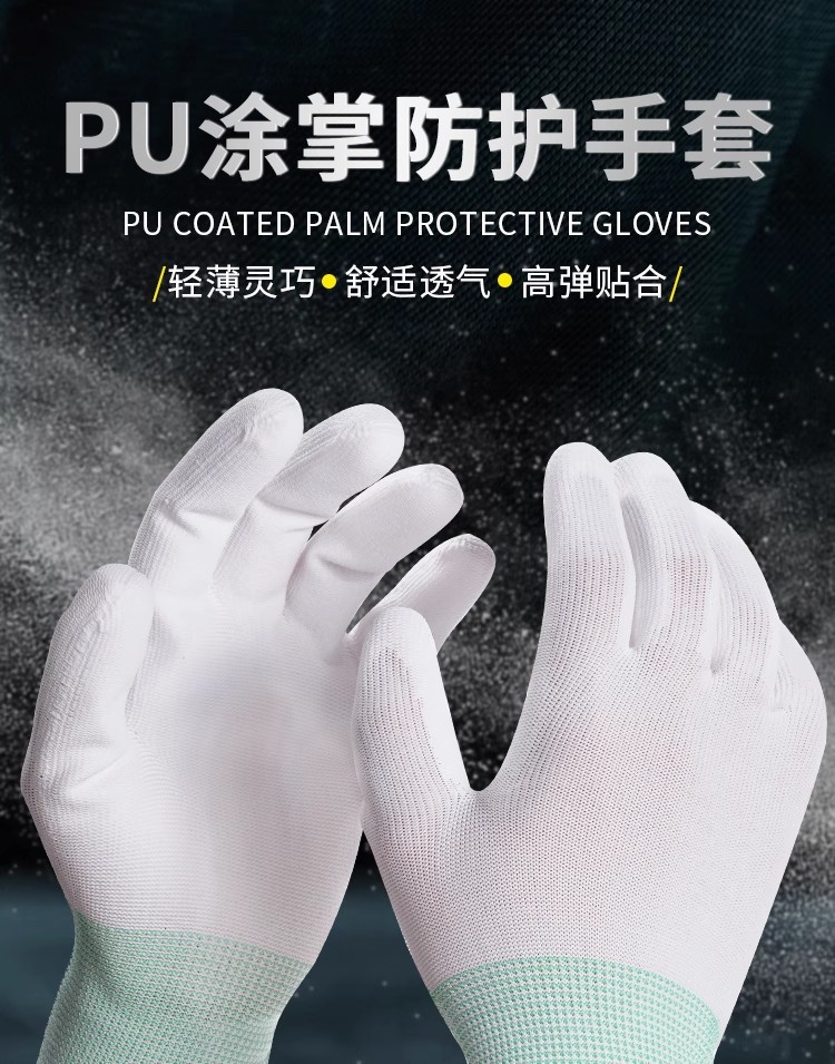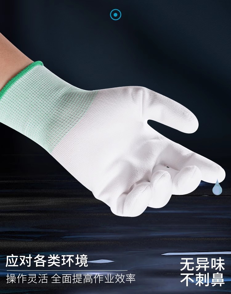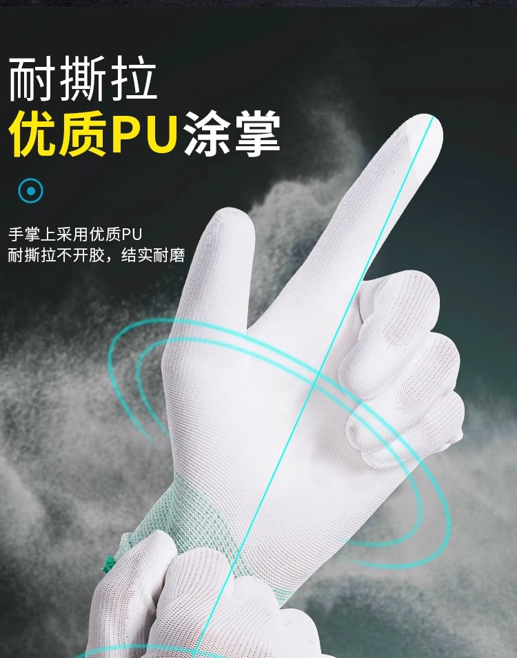 얇은 흰색 나일론 PU 코팅 손가락과 손바닥 장갑 정전기 방지 먼지 없는 전자 공장 통기성 고무 노동 보호 장갑