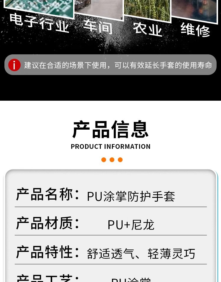 • PU 코팅 손바닥 스트라이프 장갑 S 사이즈