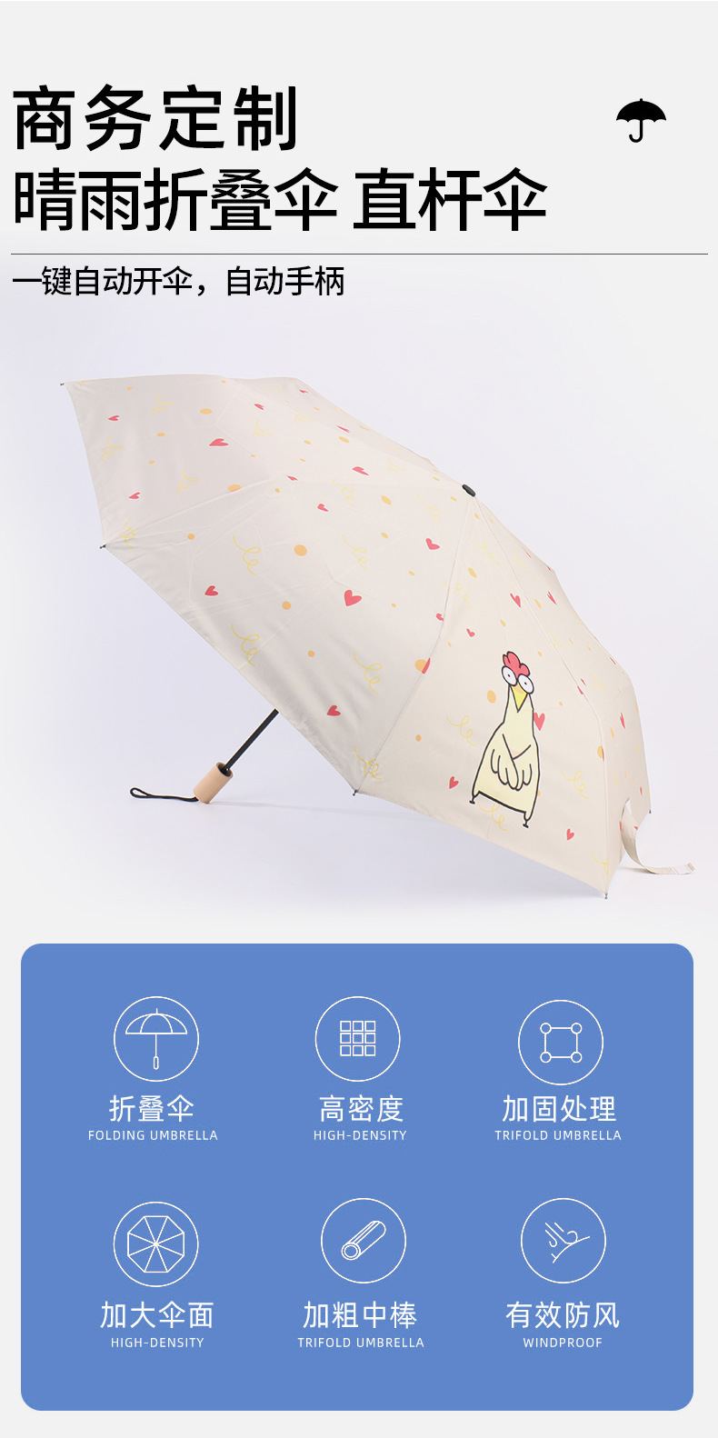 만화 스타일의 창의적인 우산 8본 반자동 접이식 태양 우산, 양산 및 자외선 차단, 소형 및 휴대용 우산스토어 가기