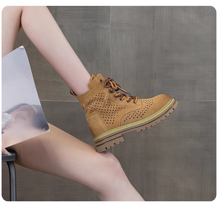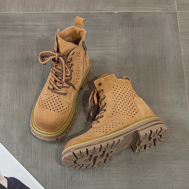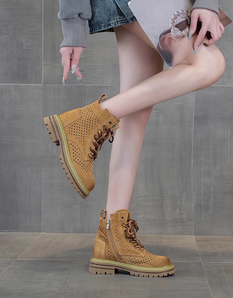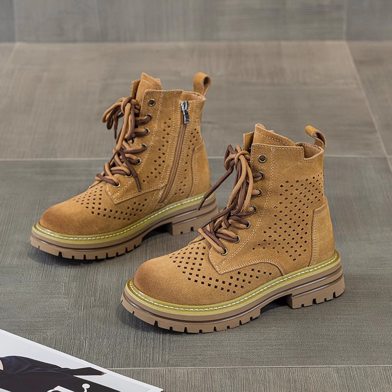 여성을위한 중공 마틴 부츠 2025 여름 새로운 핫 스타일 정품 가죽 브라운 슈퍼 핫 짧은 부츠 서양식 웨스턴 카우보이 부츠스토어 가기