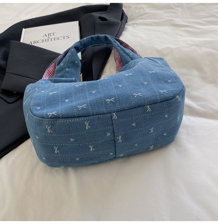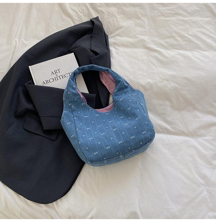 2025 프레쉬 스위트 데님 보우 스타일 대용량 심플 휴대용 통근 토트 숄더 겨드랑이 가방