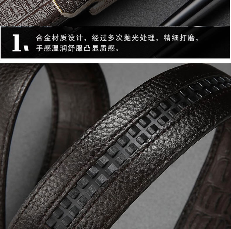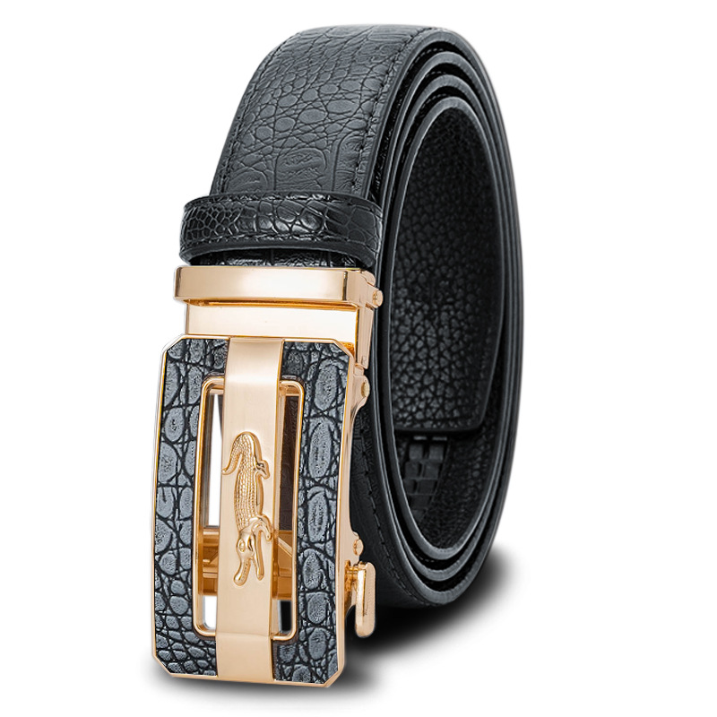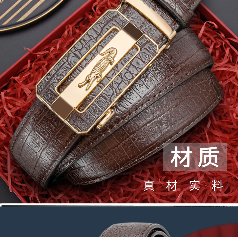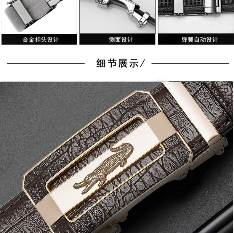 벨트 남성용 자동 버클 악어 무늬 트렌디 벨트 남성용 패셔너블하고 다재다능한 비즈니스 개성 중년 및 젊은이용 바지 벨트