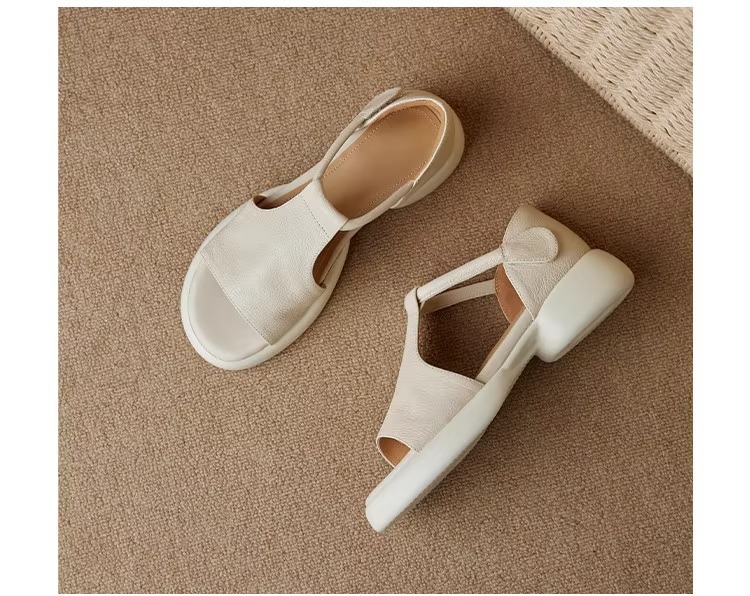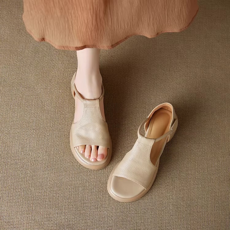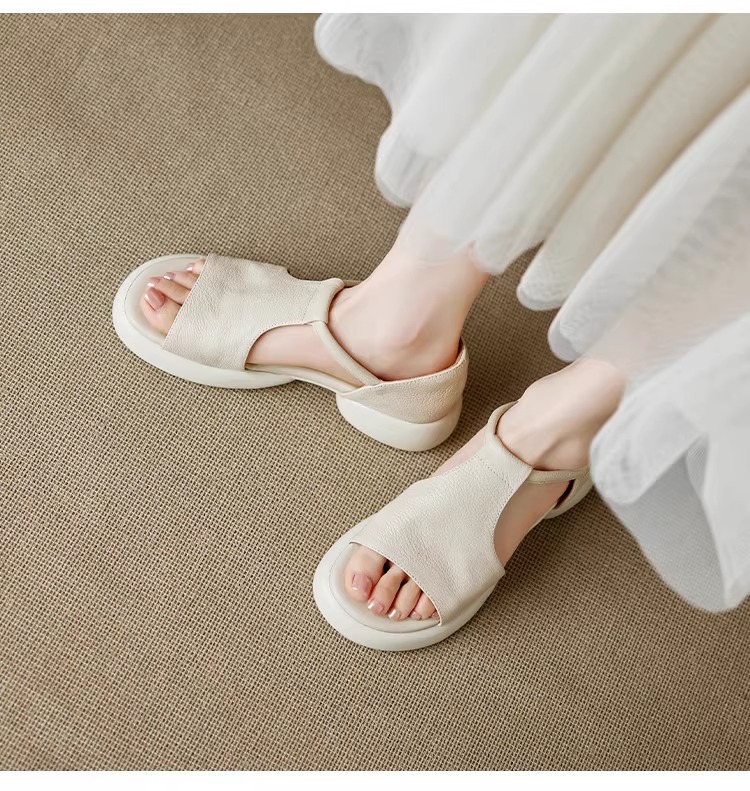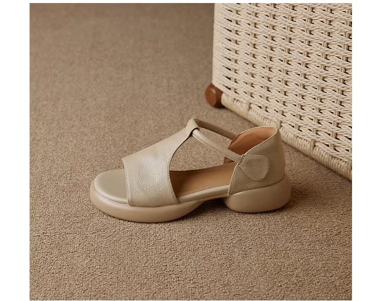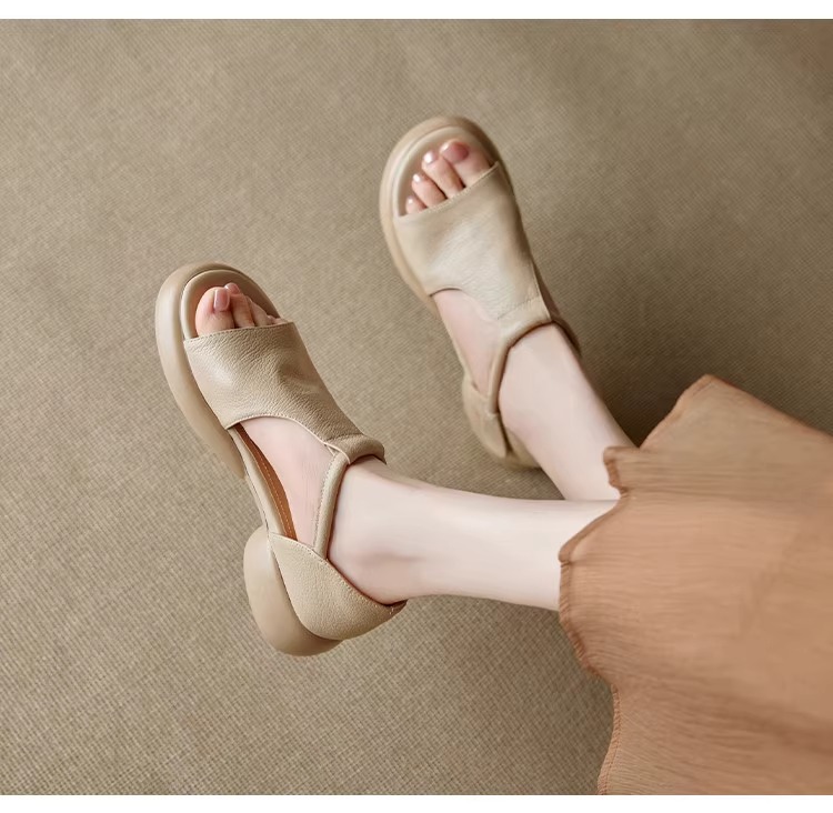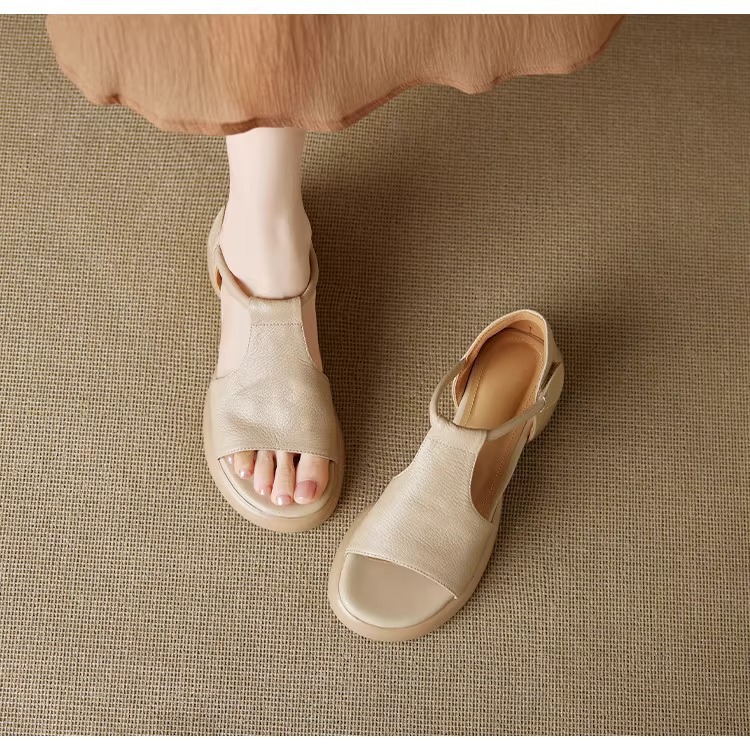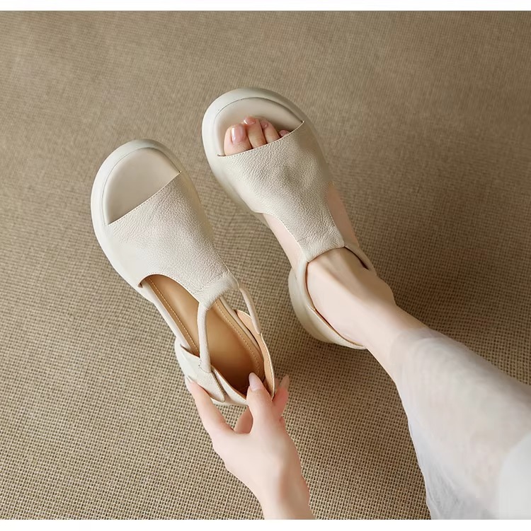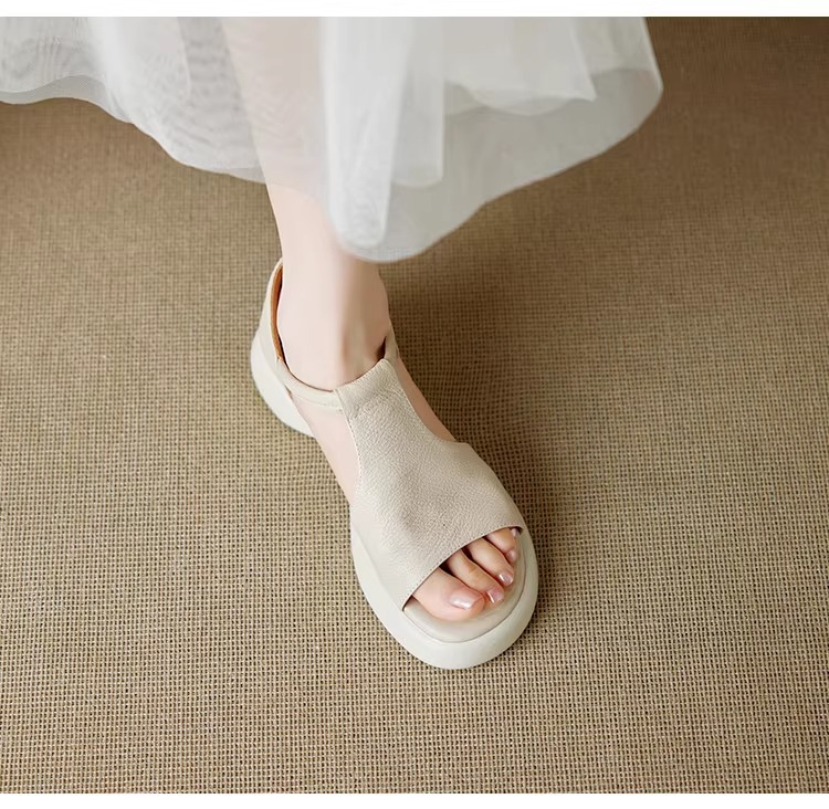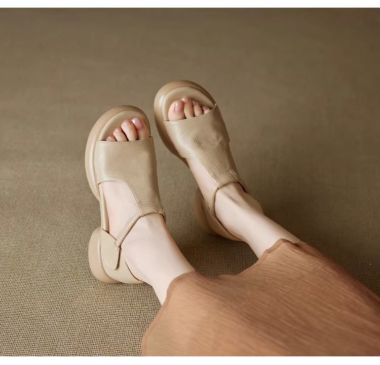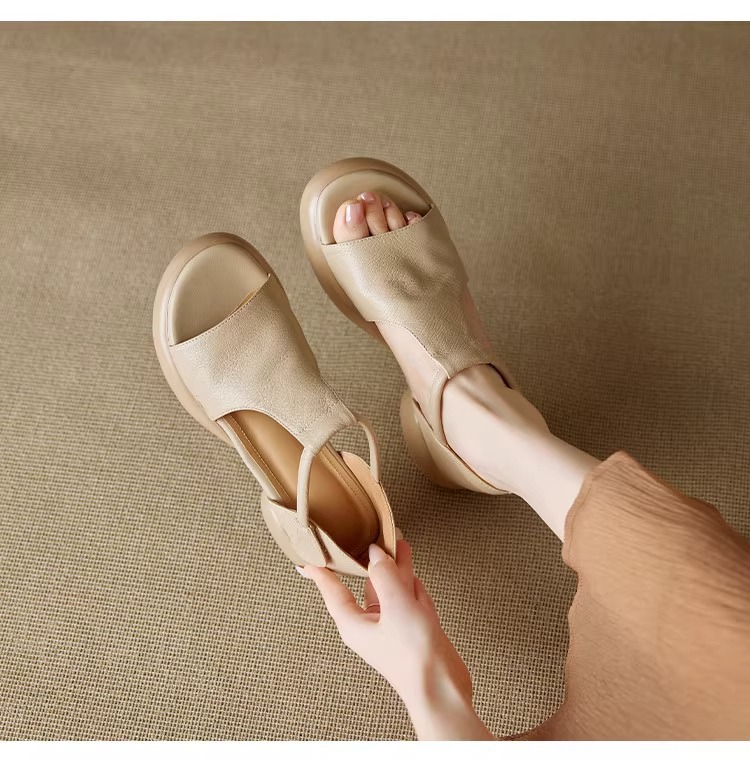 여성을위한 두꺼운 밑창 플랫폼 피쉬 입 샌들의 부드러운 가죽 버전 2025 새로운 여름 두꺼운 굽 중간 굽 부드러운 밑창 벨크로 로마 신발스토어 가기