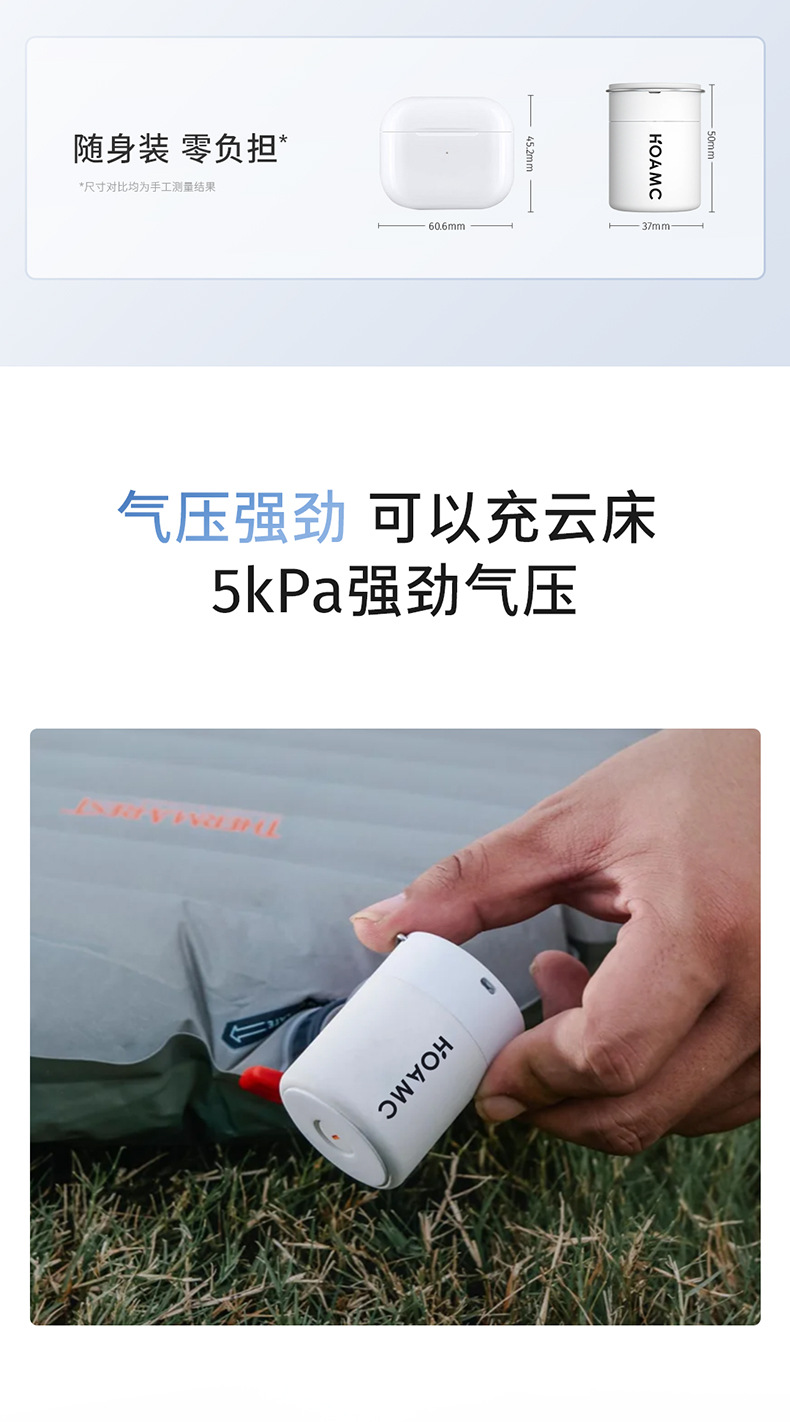 HOAMC 휴대용 다기능 전기 공기 펌프 야외 캠핑 에어 매트리스 풍선 충전 조명 3-in-one